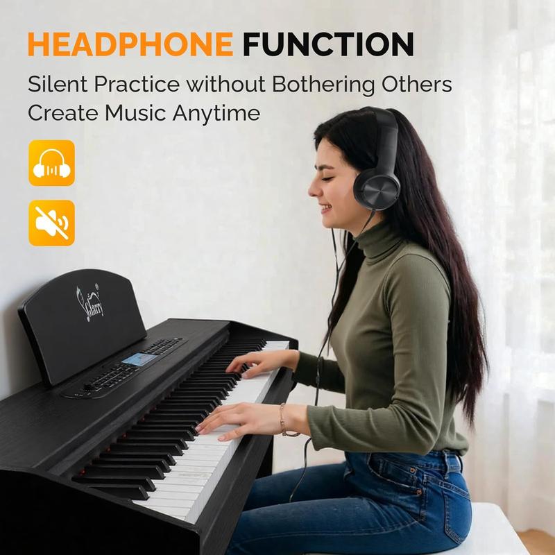 Fully Equipment and Facilities: The digital piano is equipped with a headphone, a adapter,a piano cover cloth, key stickers, a music clip, a USB cables. With the headphone, you can practice or create the music silently anytime even late night without bothering others. Others thoughtful gadgets such as key stickers can help you adapt to piano use faster, brings you more convenient experience.You can send the digital piano as a gift to your family or friends.