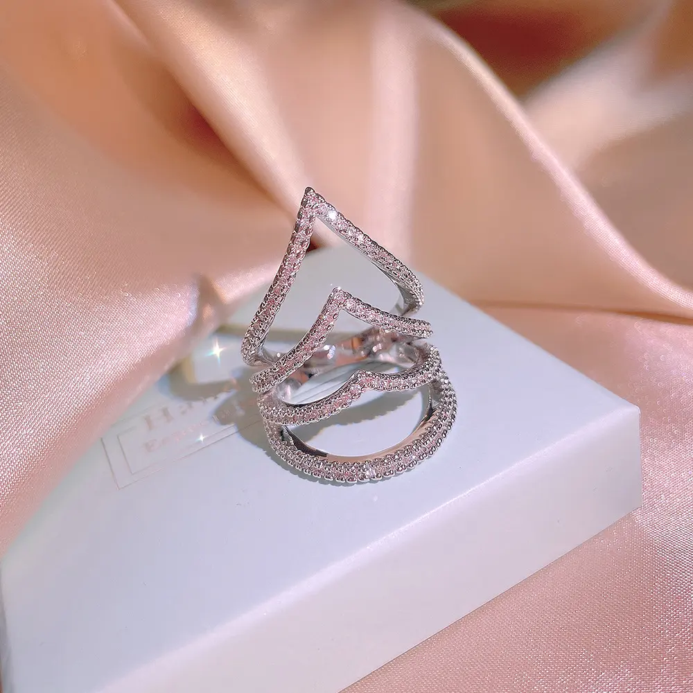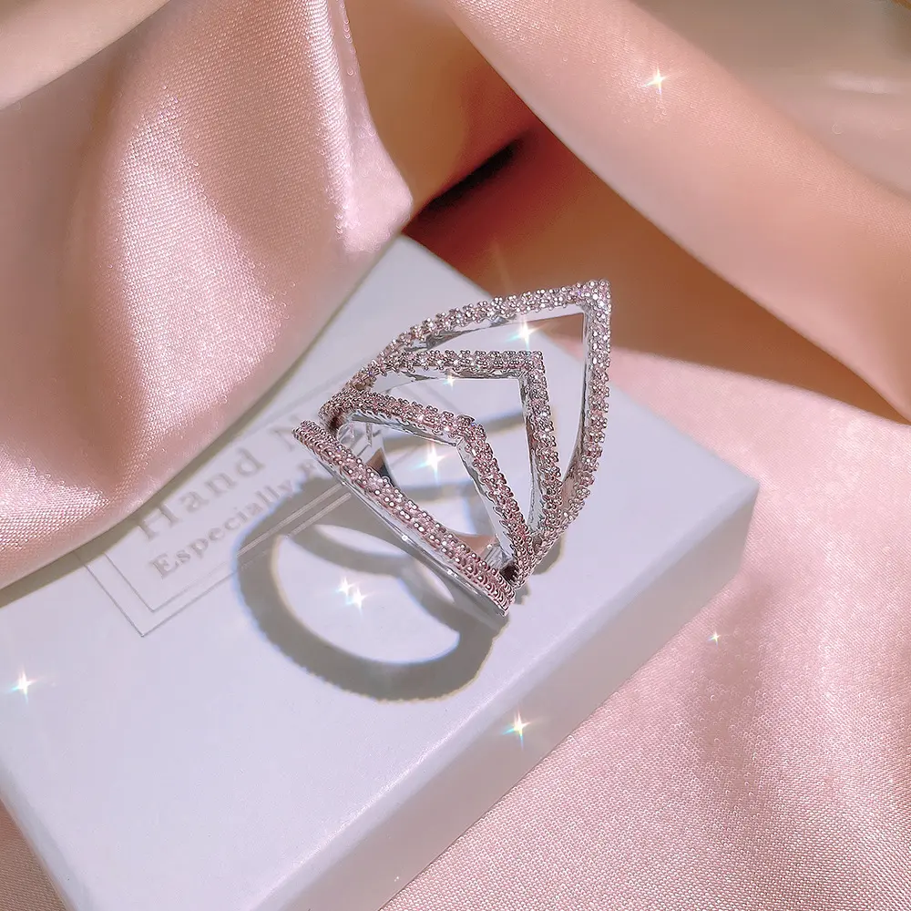 women's rose golden net line unique personality strip simple Hypoallergenic Classic Elegant Radiant V-Band Synthetic Moissanite Engagement Anniversary Ring