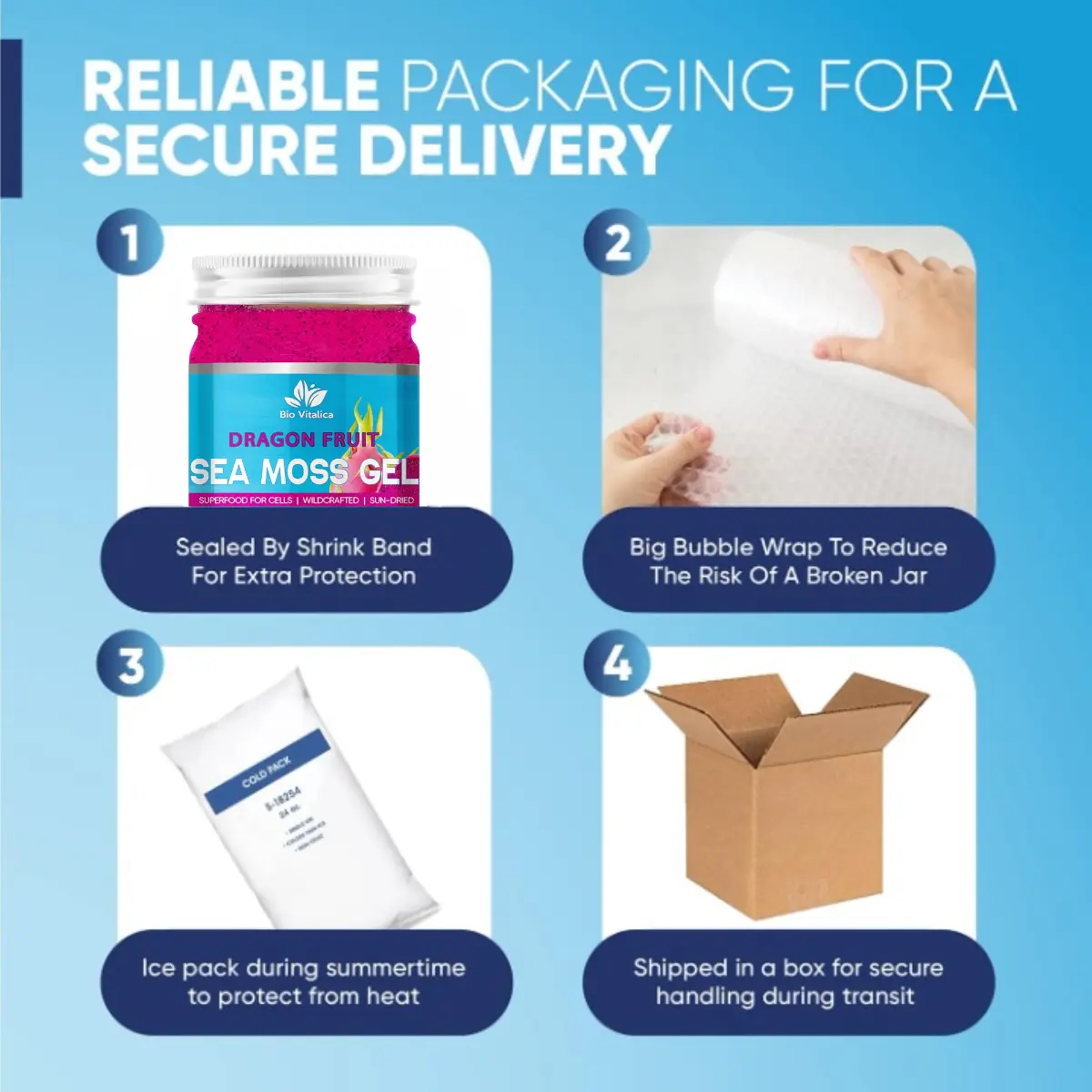 ·Natural Ingredients: Our sea moss gel is made from sun-dried Irish sea moss raw gel and infused with delicious dragon fruit.