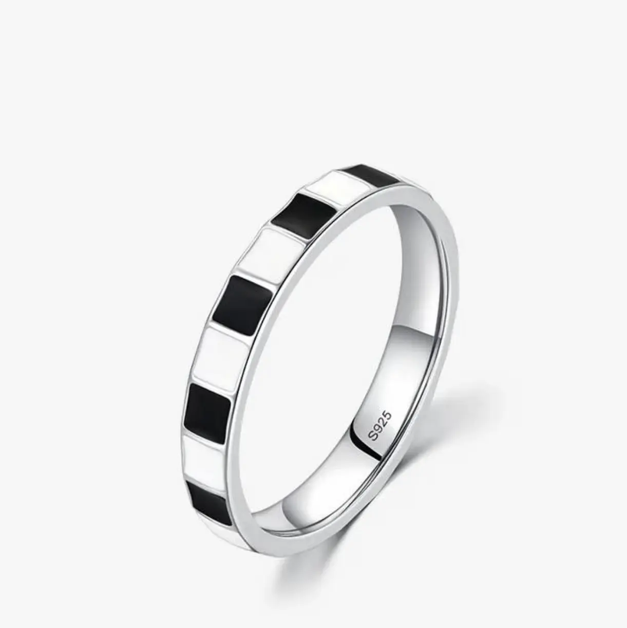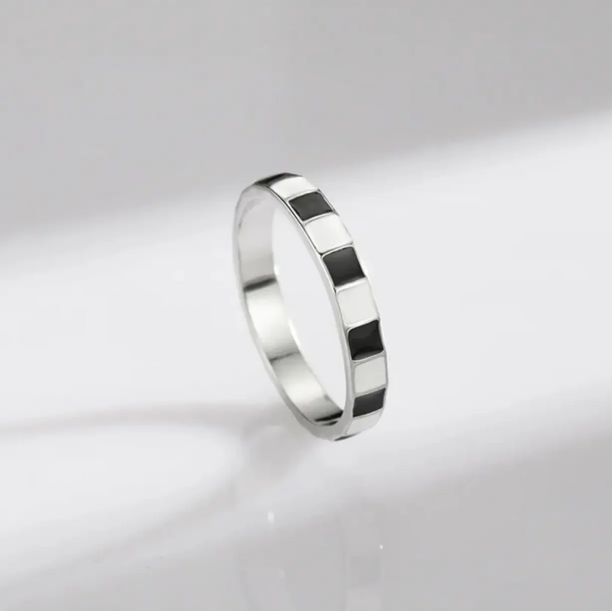 5. Elegant 925 Sterling Silver Black & White Checkers Ring (Size 5-9)