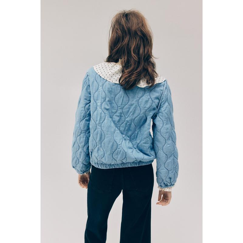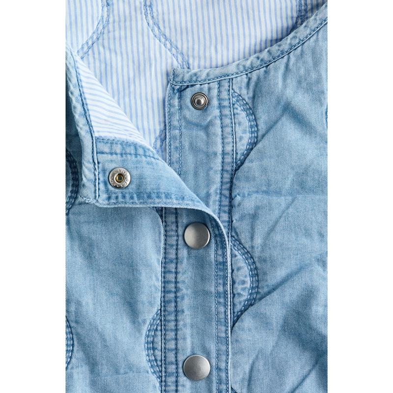 Lightly padded jacket in quilted, lightweight denim in a cotton and lyocell blend. Features a round neckline, press studs down the front and gently dropped shoulders. Covered elastication at the cuffs and hem. Cotton lining.