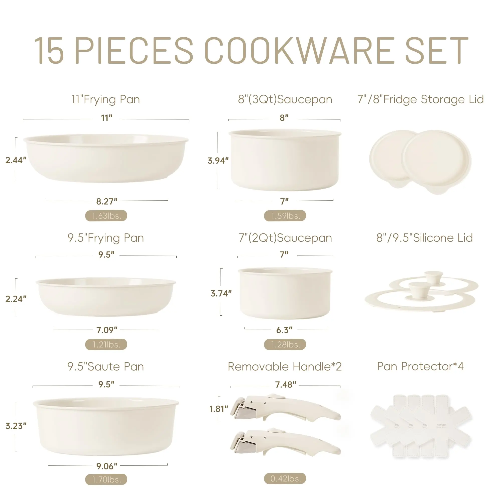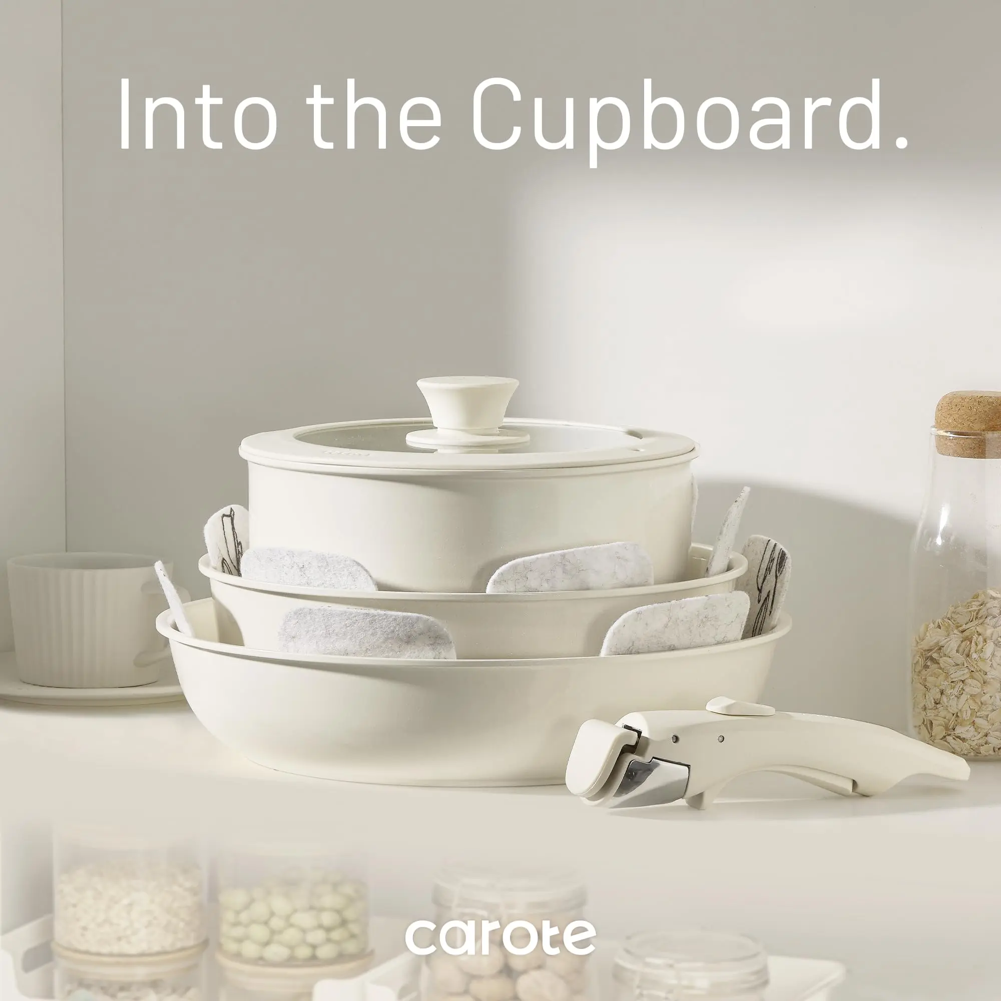 15pcs Pots and Pans Set, Ceramic Cookware Set Detachable Handle, Induction Nonstick Kitchen Cookware Sets with Removable Handle, Non Stick RV Cookware Set, Oven Safe Cookware Set, Taupe_