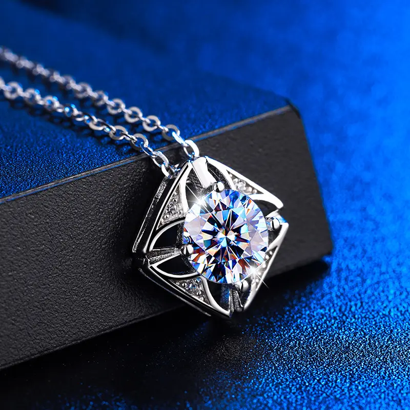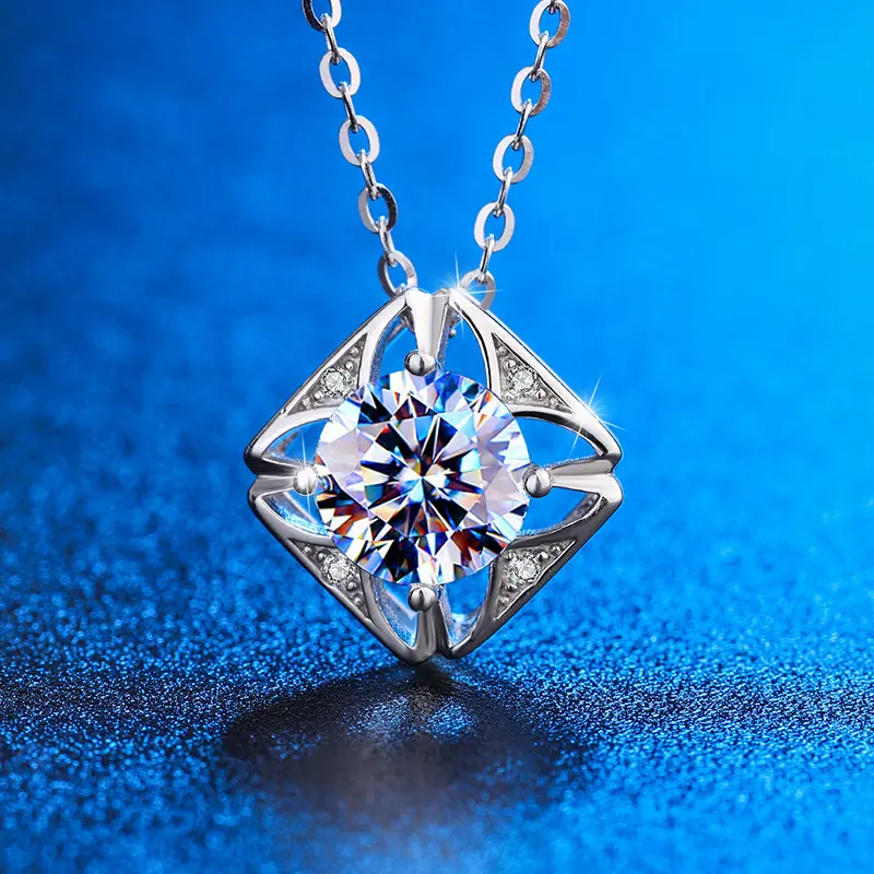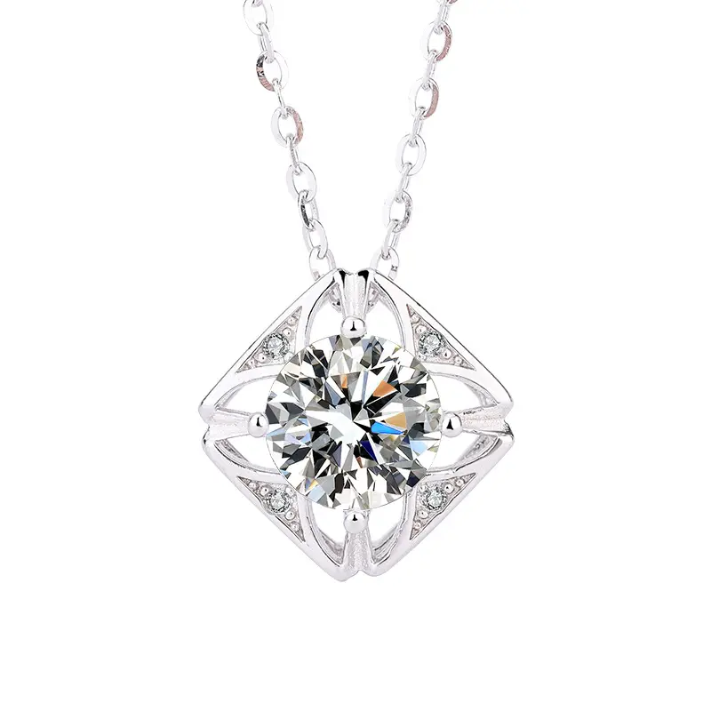 [ASM-NC123] S925 Sterling silver Moissanite ring Classic square necklace pendant fine jewelry ring fashion moissanite ring