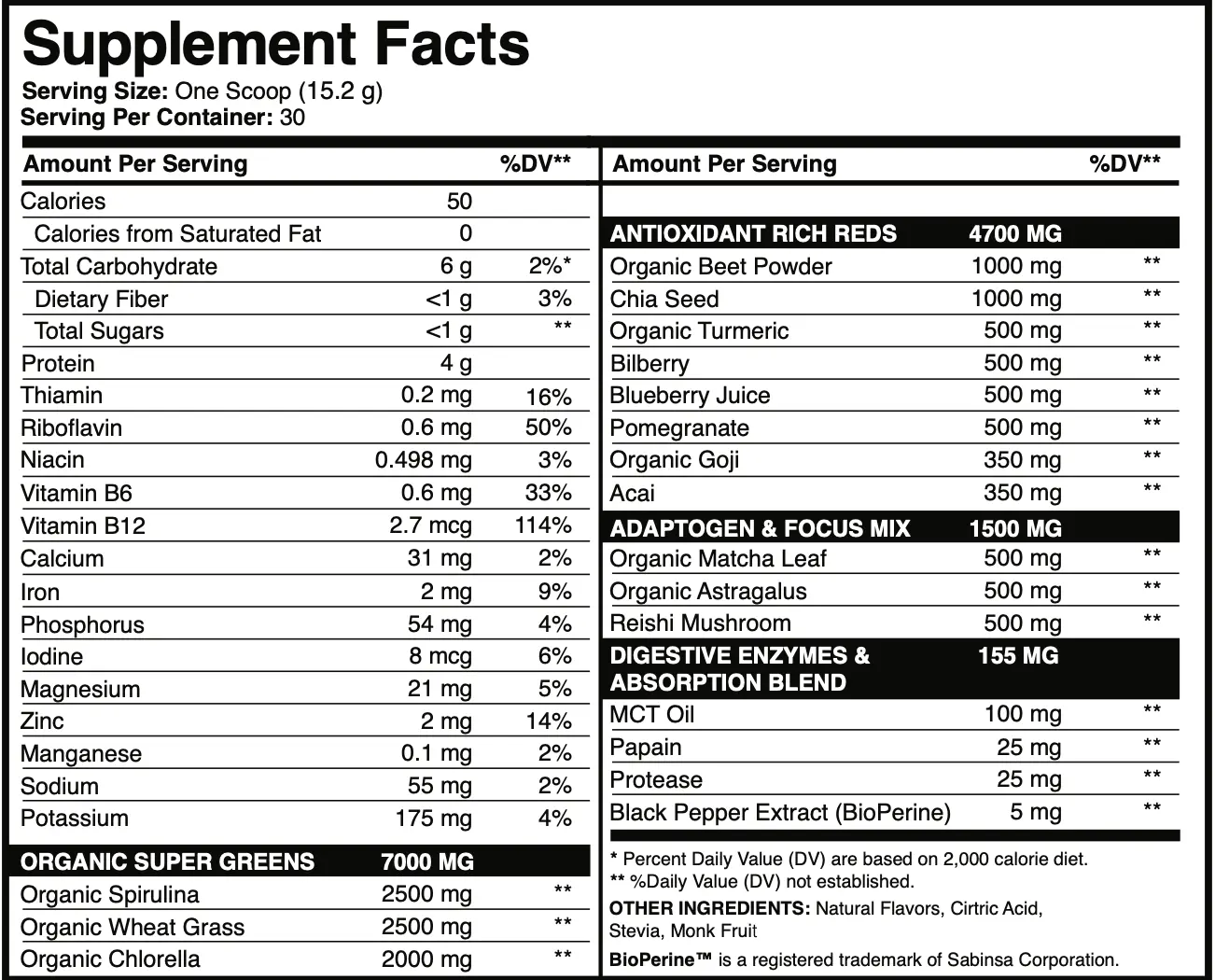 ·No Blends (Transparency): Other greens powders use blends and complexes and underdose key ingredients. If you're greens powder, lists everything in the "other ingredients", ditch it. You won’t find any hidden blends in Swolverine's Greens + Reds. We give you complete transparency and tell you exactly how much of each ingredient we use. Otherwise, you'll never know what the product you're buying truly has.