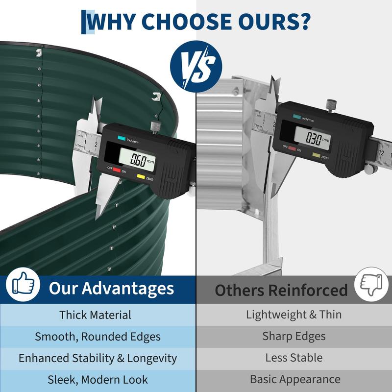 · Durable Galvanized Steel Construction: Crafted from thick, high-quality galvanized steel, this garden bed is built to withstand the elements without rusting. Unlike wood, this durable metal frame will not rust or warp, ensuring you have a sturdy and attractive centerpiece for your garden for many seasons to come.