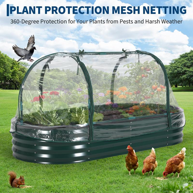 · Protective Greenhouse Cover: Extend your growing season and protect your garden bed from animals and harsh weather with the included greenhouse cover. It features convenient, roll-up zippered screen doors on both sides, allowing for easy access for watering and harvesting while promoting excellent air circulation.