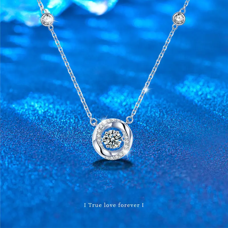 [ASM-NC129] Moissanite Mobius heartbeat Necklace 925 sterling Silver pendant fine jewelry necklacce moissanite necklace