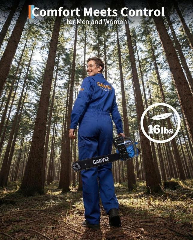 · Enhanced Safety & Comfort: Features an inertia-activated chain brake, ergonomic non-slip handle, anti-vibration system, and professional-grade safety controls to reduce fatigue and improve handling.