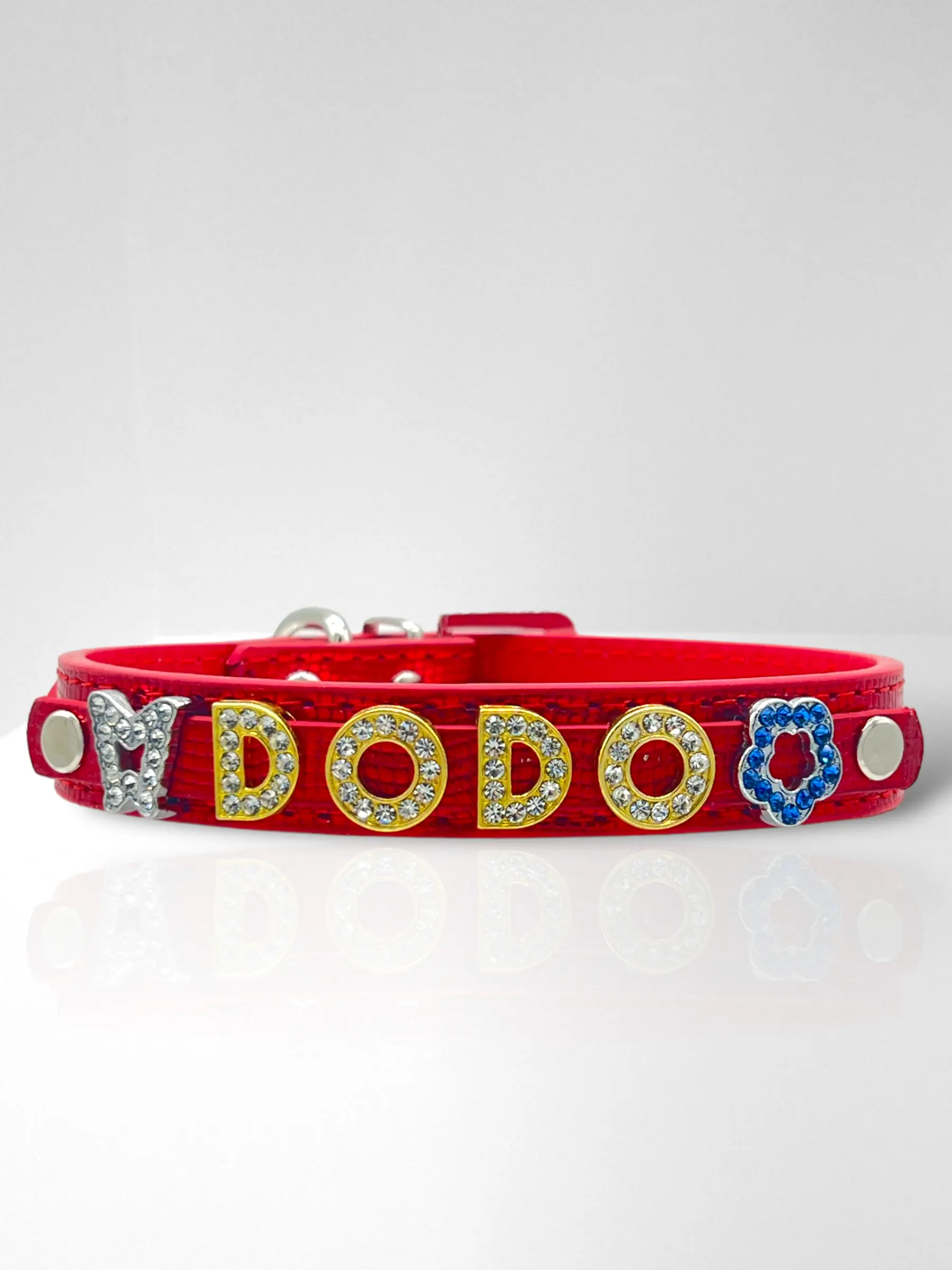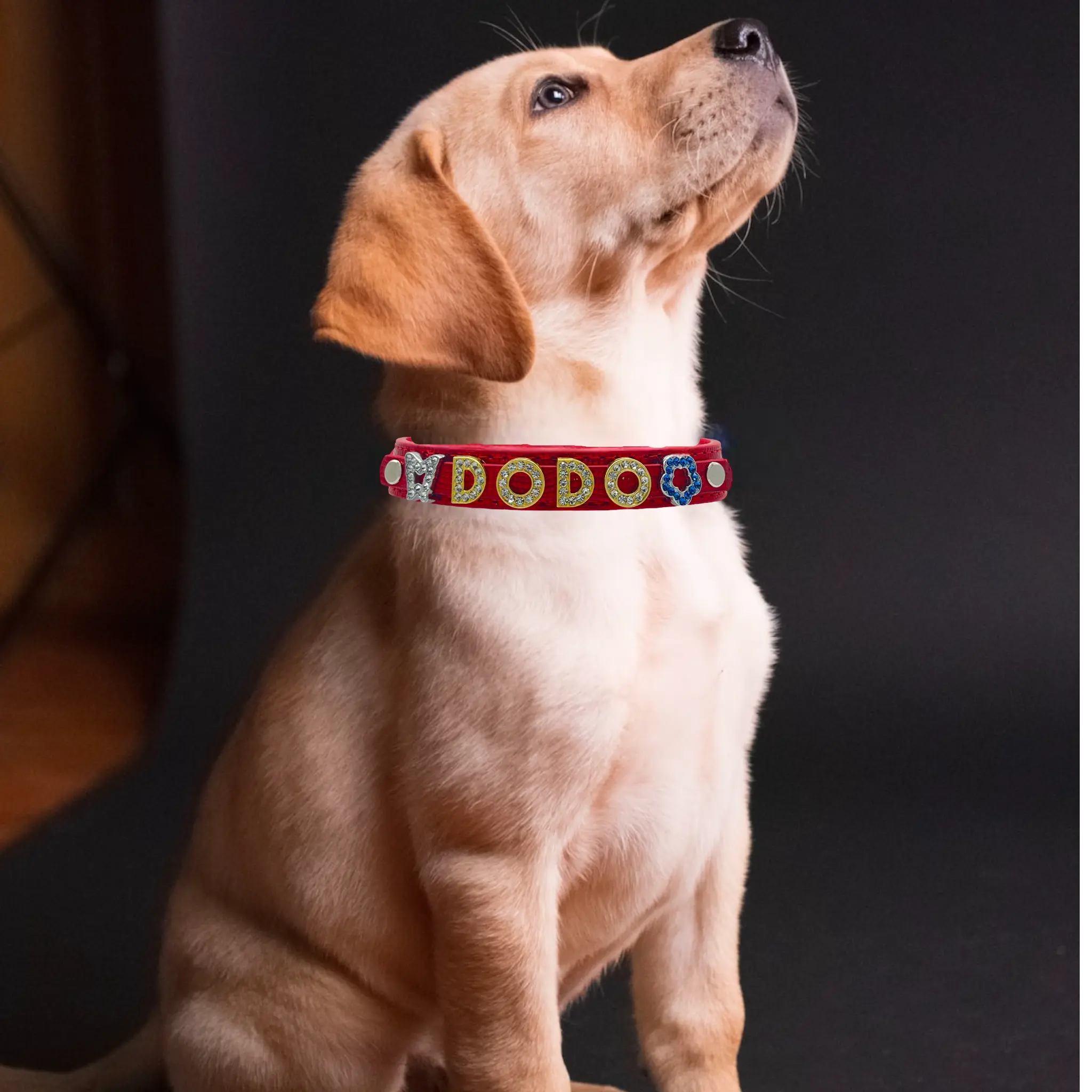 Each collar is customized with colorful rhinestone alphabet letters and symbols, allowing you to personalize it with your dog's name or any message that holds special meaning to you. The vibrant rhinestones add a touch of sparkle and charm, making your dog stand out in any setting.
