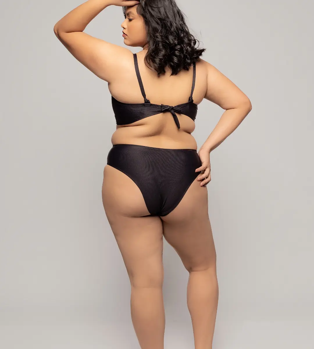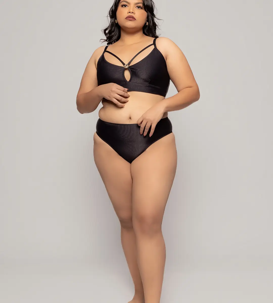 Plus Size Bikini without padding, featuring a contemporary strappy bra design enhanced by an exclusive bust-accentuating accessory. This modern piece combines aesthetic allure with practicality, ensuring you look and feel sensational.