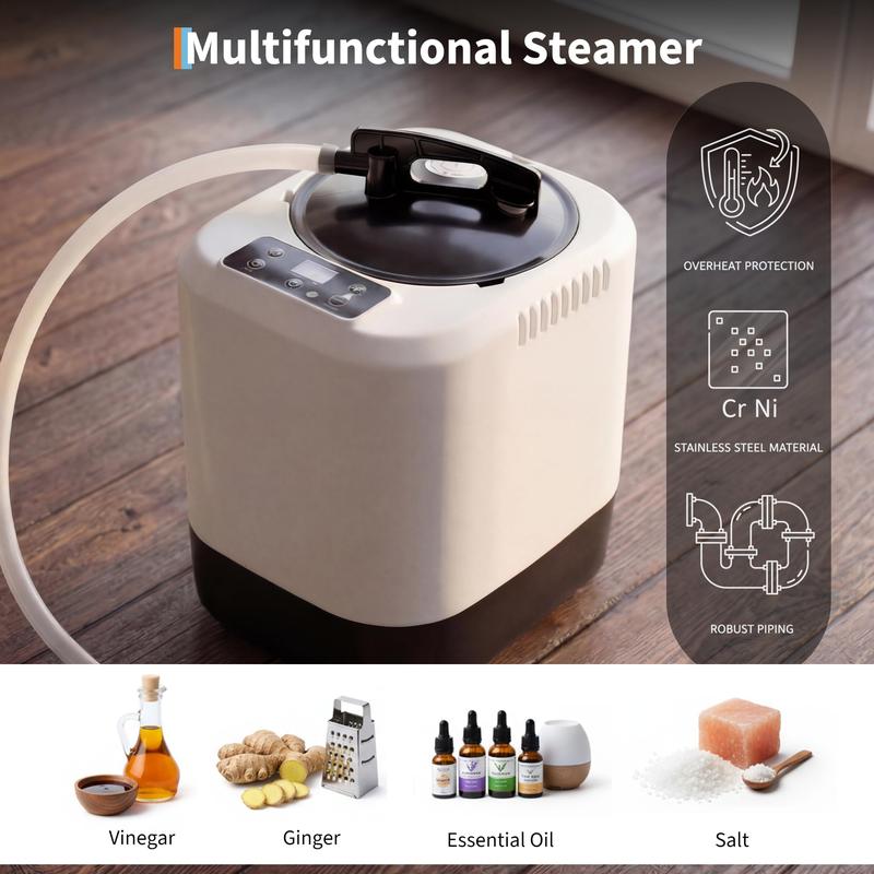 · 【Powerful 1000W Steam Generator with 2L Capacity】Equipped with a 1000-watt steam generator and 2L water tank, this sauna delivers consistent, steady steam in minutes. The large water capacity keeps steam flowing for extended sessions, while the 60-minute adjustable timer lets you tailor your experience—whether you want a quick 15-minute refresh or a 45-minute deep relax
