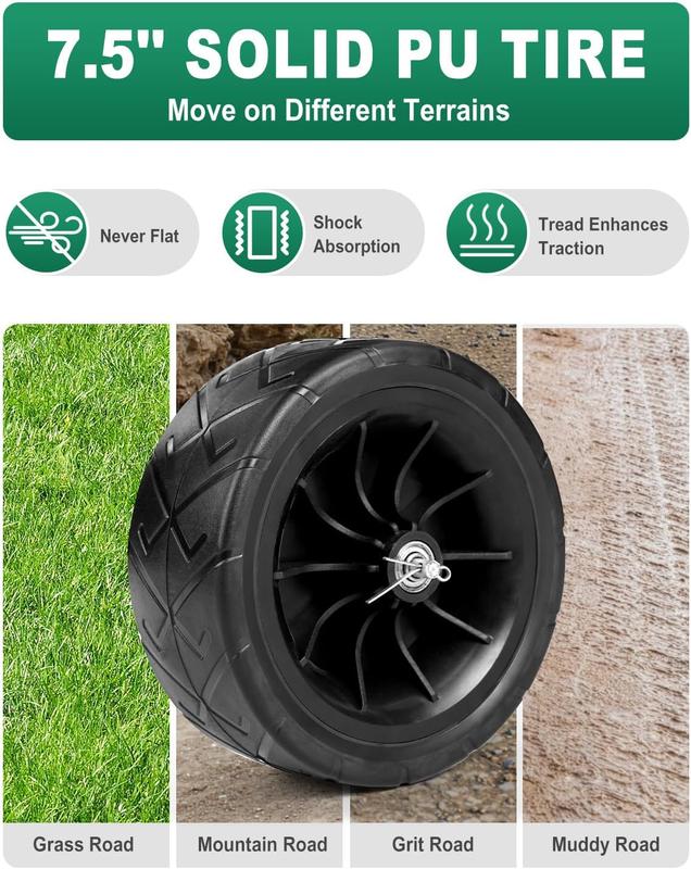 Compared to pneumatic tires, PU tires never leak and require no inflation!