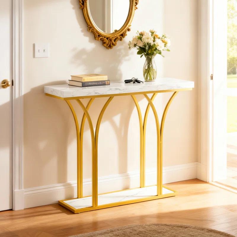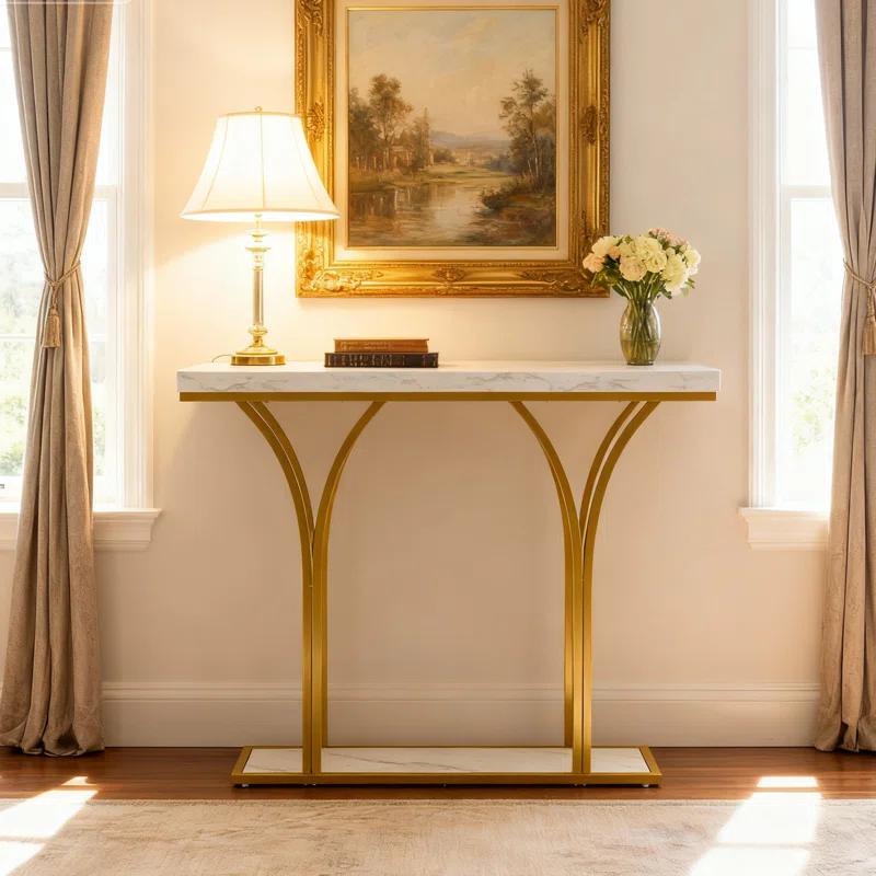·Spacious Tabletop: With a spacious surface, this gold marble console table easily accommodates all your storage and display needs.