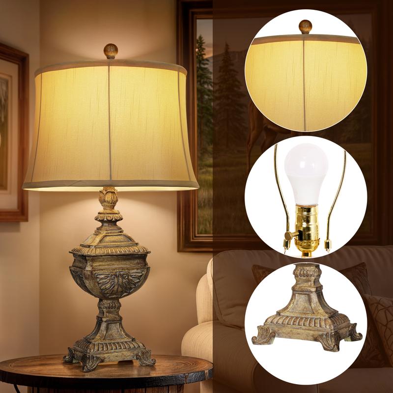 27 - inch large brown resin lamp body features a classic vintage design, with the texture of resin enhancing its retro charm. It serves as both a lighting fixture and a stylish decorative piece, adding an elegant touch to your space.