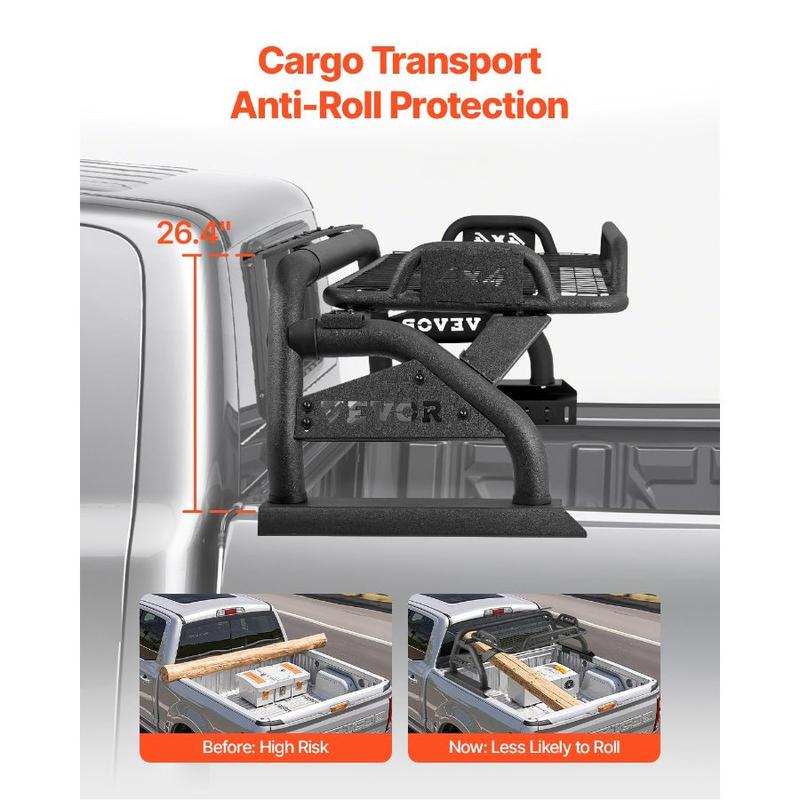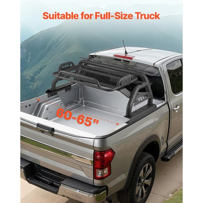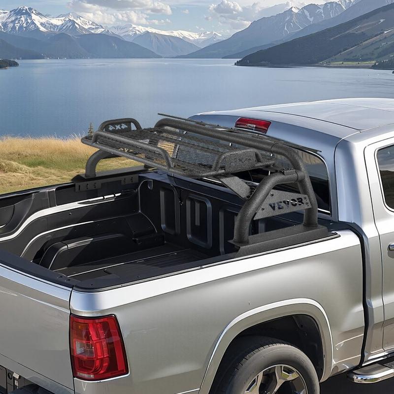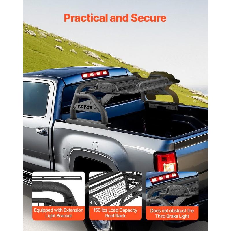 VEVOR Truck Bed Roll Bar, Universal Adjustable Sport Bar Chase Rack Compatible with Full - Size Mid - Size Pickup, With LED Brake Light, Stainless Steel+ Carbon Steel No Rack IncludedVEVOR Truck Bed Roll Bar, Universal Adjustable Sport Bar Chase Rack, with Luggage Rack for Full-Size Pickup, Carbon Steel Construction with Extension Light Bracket, Rust-resistant Coating Cargo Protection Easy to Use Night Driving Protection Professional Design Easy Installation Secure