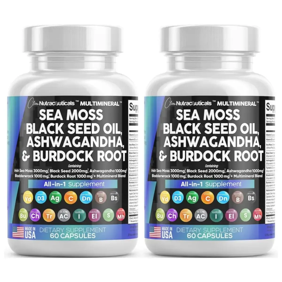 ·The Raw Sea Moss and Black Seed Oil Capsules You’ve Been Looking For - Clean Nutra's MultiMineral provides 6 full-dose products in one, containing a full Irish Sea Moss Powder, Black Seed Powder, Ashwagandha Extract, Bladderwrack Powder, and Burdock Root Powder in a convenient all in one supplement! Finally, irish sea moss wildcrafted, black seed, ashwagandha powder, bladderwrack herb and burdock root pills have been packed into one convenient solution that's quick and easy to take.