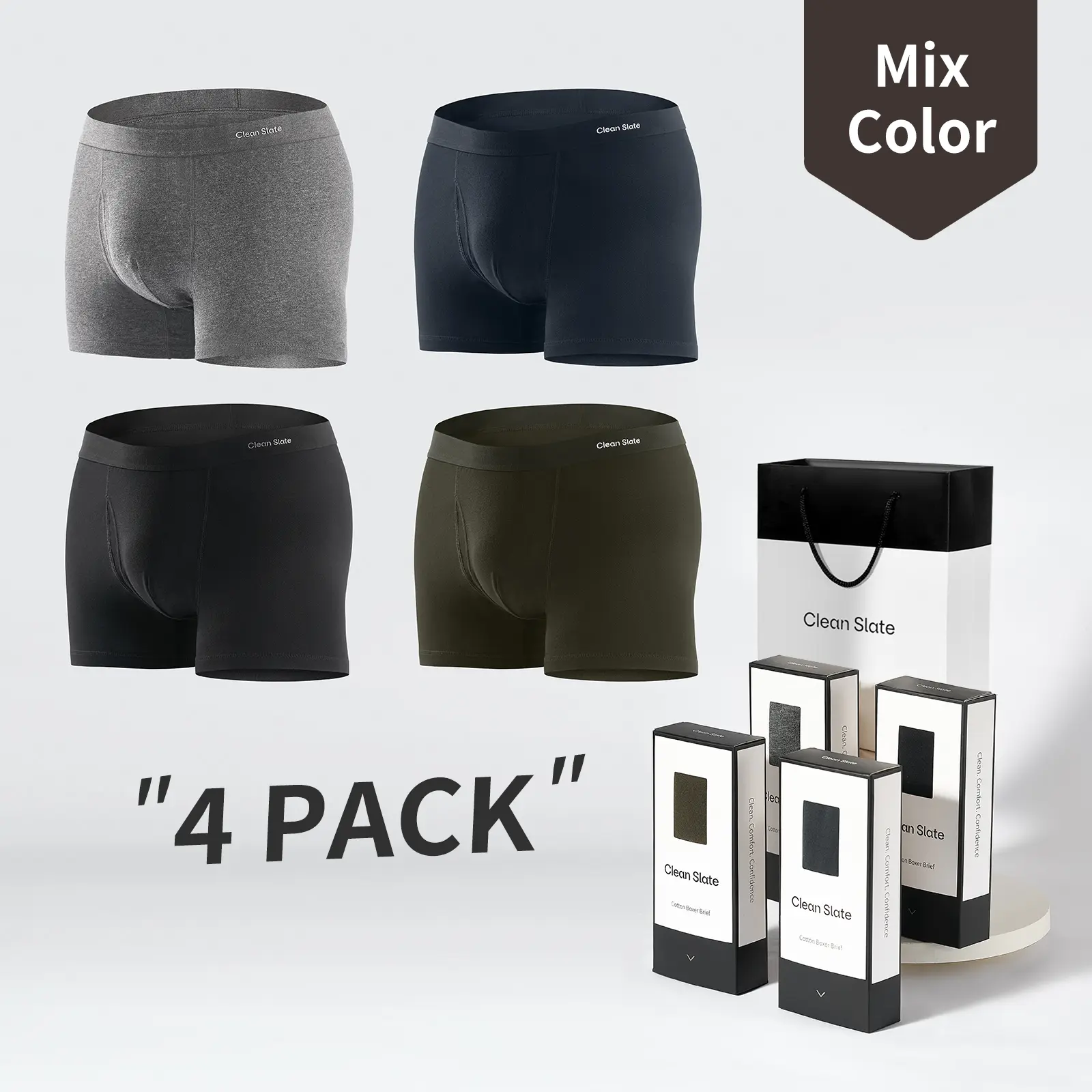 Elevate your daily comfort with the Clean Slate 4-Pack Cotton Bower Briefs—presented in a sleek classic gift box, perfect for gifting to friends, lovers, or family. Each pair is individually wrapped, blending practicality with sophistication, while embodying our core promise: Clean. Comfort. Confidence.