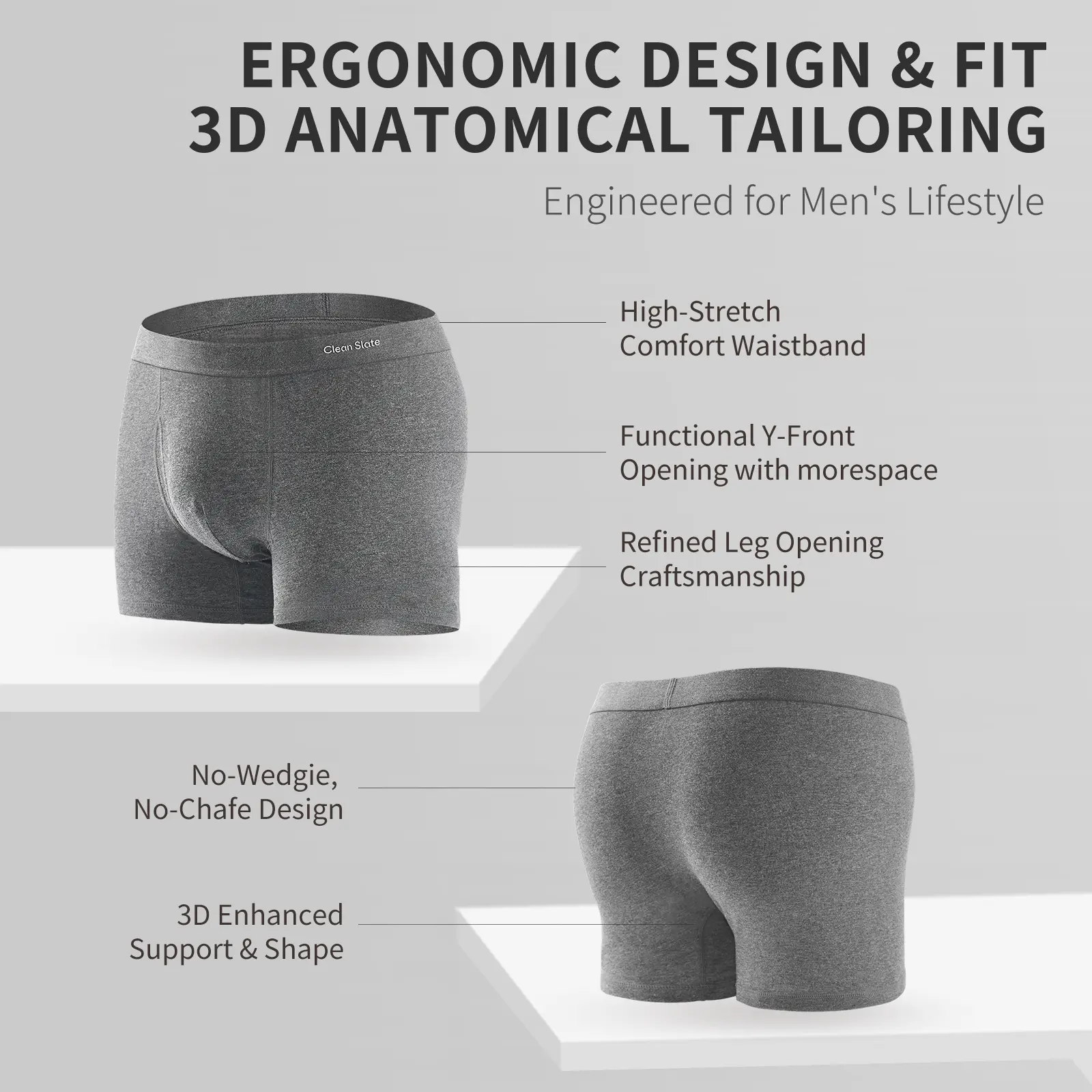 Engineered for men’s lifestyle, the 3D anatomical tailoring delivers a flawless fit: high-stretch comfort waistband (no digging!), functional Y-front opening with extra space, refined leg openings, and a no-wedgie, no-chafe design. 3D enhanced support keeps you comfortable from work to sport to leisure.