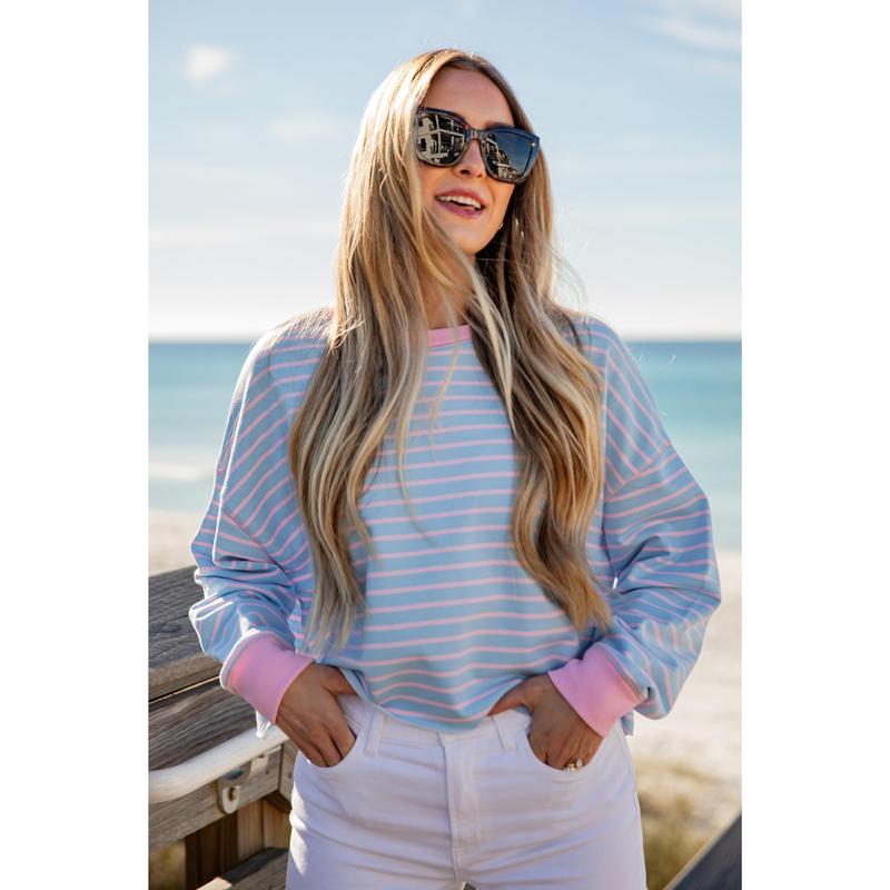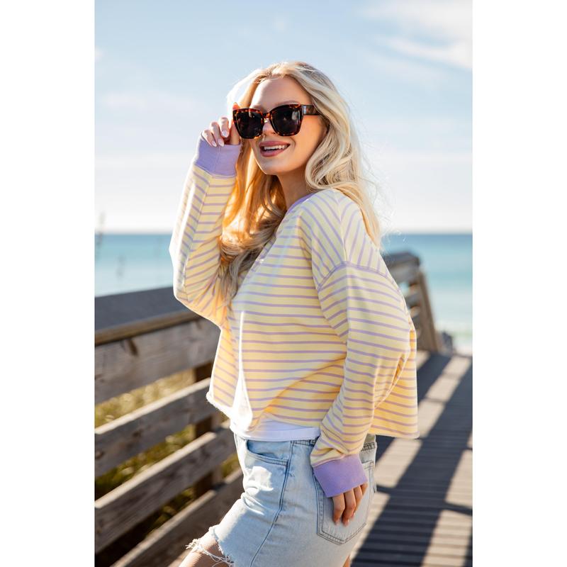 Brighten up your wardrobe with the Sweet Horizon Stripe Cropped Pullover! Featuring horizontal stripes, this cozy knit top brings a playful pop of color to your everyday look. Designed with a relaxed cropped fit, ribbed neckline, and long sleeves, it offers a flattering silhouette that pairs effortlessly with high-waisted jeans, joggers, or lounge shorts. Lightweight yet warm, this pullover is perfect for transitional seasons and casual-cute styling. Comes in 2 Colors.