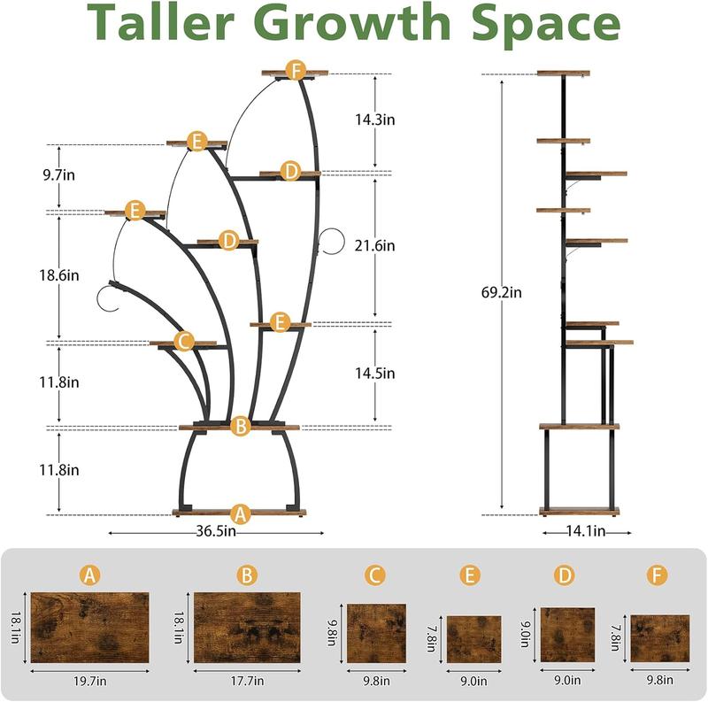 ·【Ample Vertical Space for Multifunction】Versatility meets style with our plant shelf. It's more than just a home for your plants—it's a canvas for your creativity. Display books, collectibles, photo frames, or even your favorite trinkets. With its spacious vertical tiers, it's the solution for organized yet stylish living. A beautiful blend of form and function that adapts to your ever-changing needs