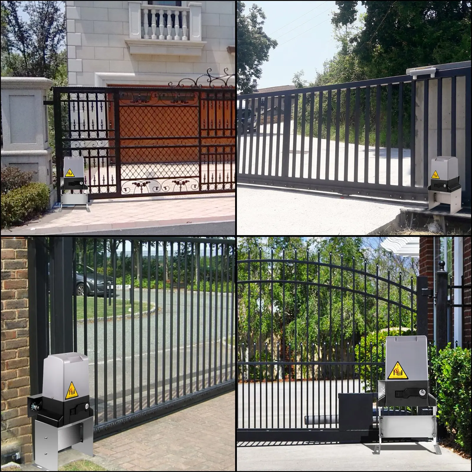 [HIGH-QUALITY & POWERFUL]- The sliding gate opener is constructed of durable plastic ABS material, pure copper motor, and galvanized steel plate base.The shell is waterproof, dust-proof, and corrosion & rust-resistant.The strong 1HP/750W motor provides greater pulling force up to 3300 lbs/1497 kg.[SMART GATE OPENER]- The automatic sliding gate has advanced technology with two control modes.The gate opener comes with four remote controls for easy operation.You can also control your gate with the phone APP.The convenient remote controls operate perfectly within 230 ft/70 m, so you do not have to get out of your car to open the gate.[REINFORCED PROTECTION]- The wireless keypad provides enhanced protection and safety.With the infrared sensor, the door will automatically rebound for obstacles.The manual release key is designed for the power outage or when you lose your remote.[ULTRA-QUIET DESIGN]- The chain gate opener is equipped with durable nylon chains and produces less than 60 dB noise so that you will not be bothered by high-decibel pollution and can work in a quiet environment.[VARIOUS USES]- The automatic gate opener is suitable for all types of sliding gates and perfect for driveway gates.It is compatible with other accessories, such as infrared sensors, solar panels, alarms, wireless keypad, etc.VEVOR Sliding Gate Opener 3300 LBS Automatic Sliding Gate, Gate Opener Motor with 2 Remote Controls, 230 ft Remote Distance Driveway Rolling Gate, Automatic Sliding Gate Opener for Sliding Gate