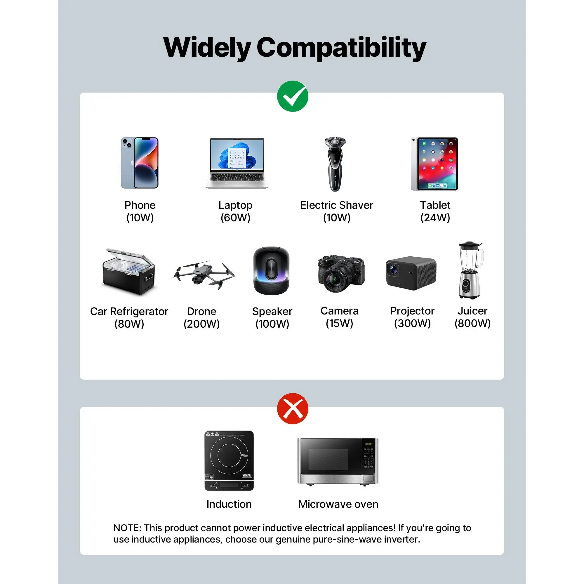 Four Ports for Versatile Charging: This 1000W power inverter features USB, AC, and Type-C ports with fast charging capabilities, allowing multiple devices to be powered at once.Enjoy the convenience of inverter power outdoors just like at homeWide Compatibility: Our modified sine wave inverter works with GEL, SLA, LI, FLD, AGM, CLA, and USER batteries, giving you the flexibility to switch battery types according to your needs or budget without worrying about incompatibilityMultiple Protections: This wave inverter has over-voltage, under-voltage, overload, over-temperature, short-circuit, and reverse polarity protection.The smart cooling fan automatically activates when temperature exceeds 113°F/45°C, extending the lifespanTough Build: Constructed with an aluminum alloy housing that is lightweight, corrosion-resistant, and rust-proof-perfect for outdoor use.Ideal for RV camping, mobile office, in-vehicle power, or as a home emergency backupEffortless to Use: Comes with a cigarette lighter cable for plug-and-play operation-no complicated wiring required.This power inverter ensures instant and reliable power wherever you need itVEVOR 1000W Power Inverter, 12V DC to 120V AC Modified Sine Wave Inverter, Car Charger Converter with USB & Type-C Port, 2 AC Outlets, LED Indicator Light, Ideal for RV, Truck Outdoor Camping