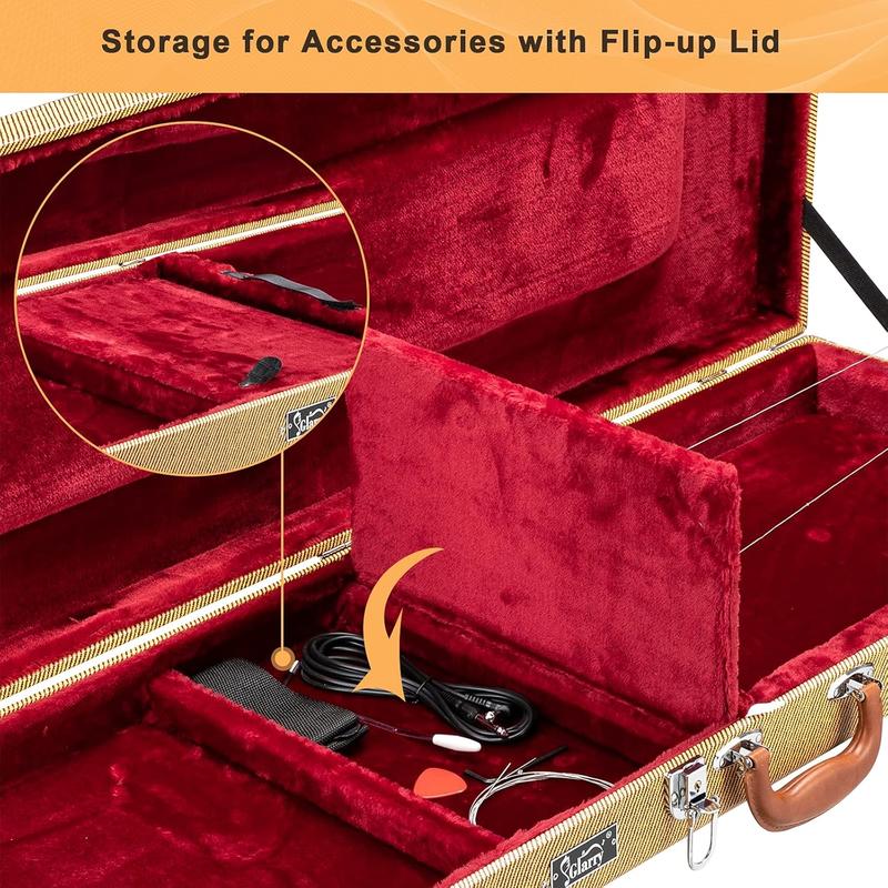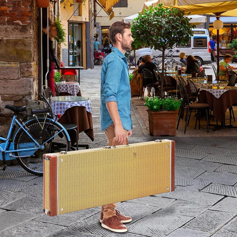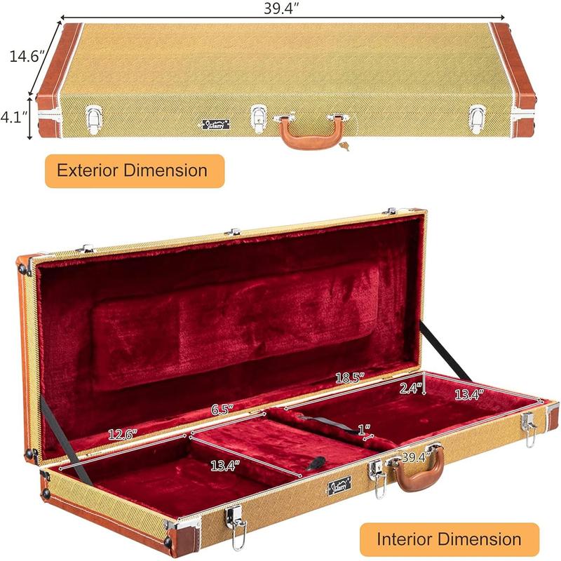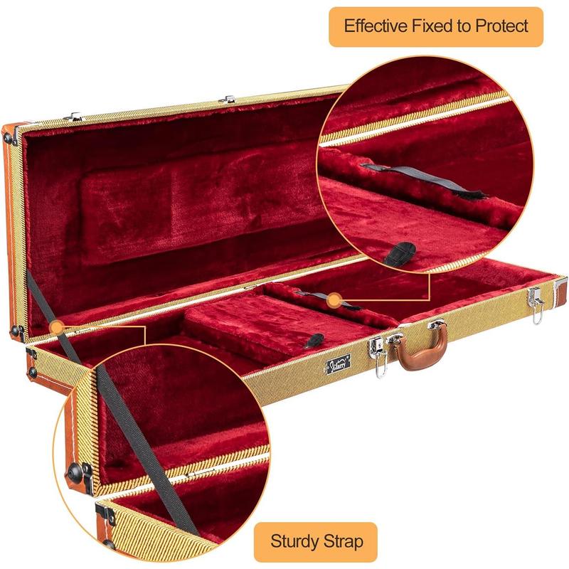 SUPERIOR MATERIAL:ourrectangle ST case is made of high quality wood, leather, plush and hardware accessories material. This material not only protects your beloved guitar, but is also durable and sturdy.