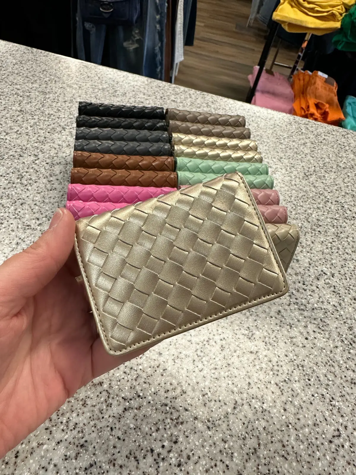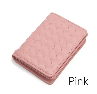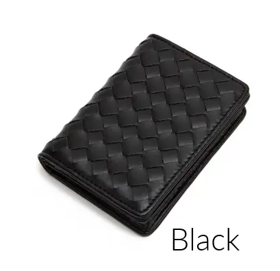 Vegan Leather Woven Bifold ID Card Case Weaved Wallet