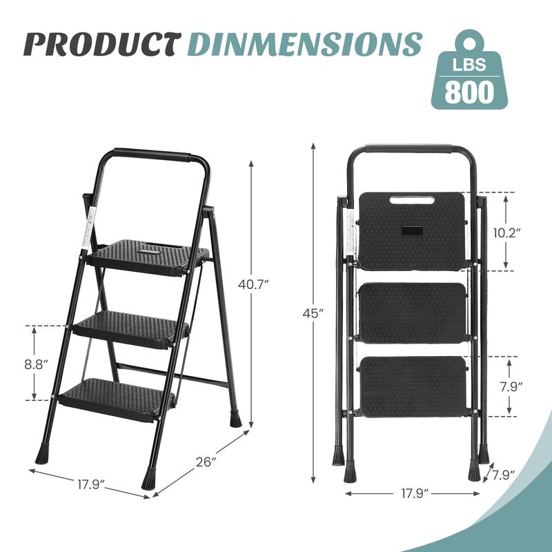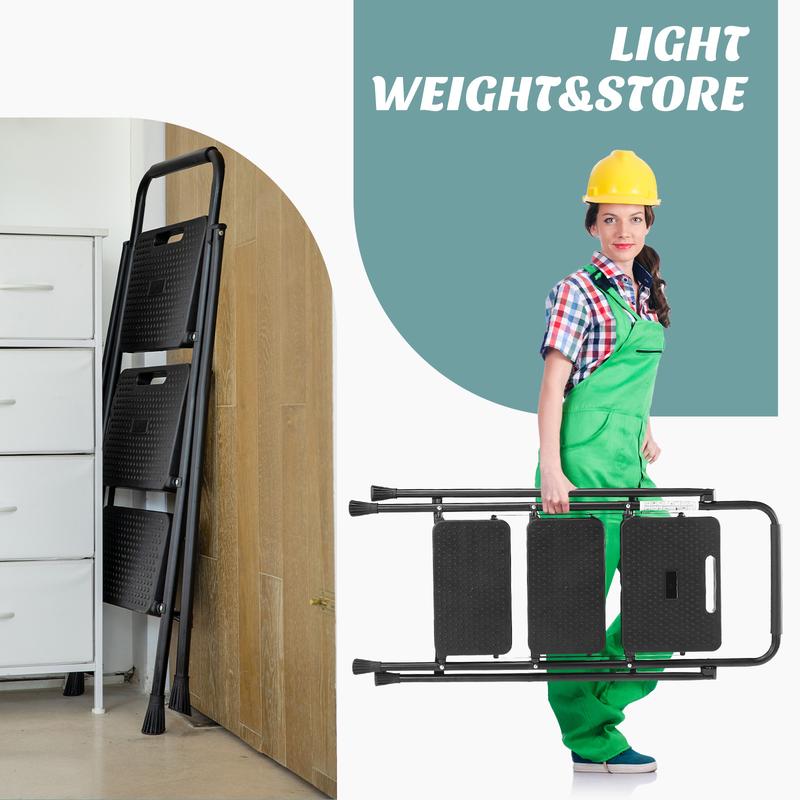·PORTABLE AND SPACE-SAVING: This Folding Step Stools Comes fully assembled!Lock and open system for easily open and fold. It folded to just 1.6" D for storage and transportation. Easy to carry for using indoor or outdoor
