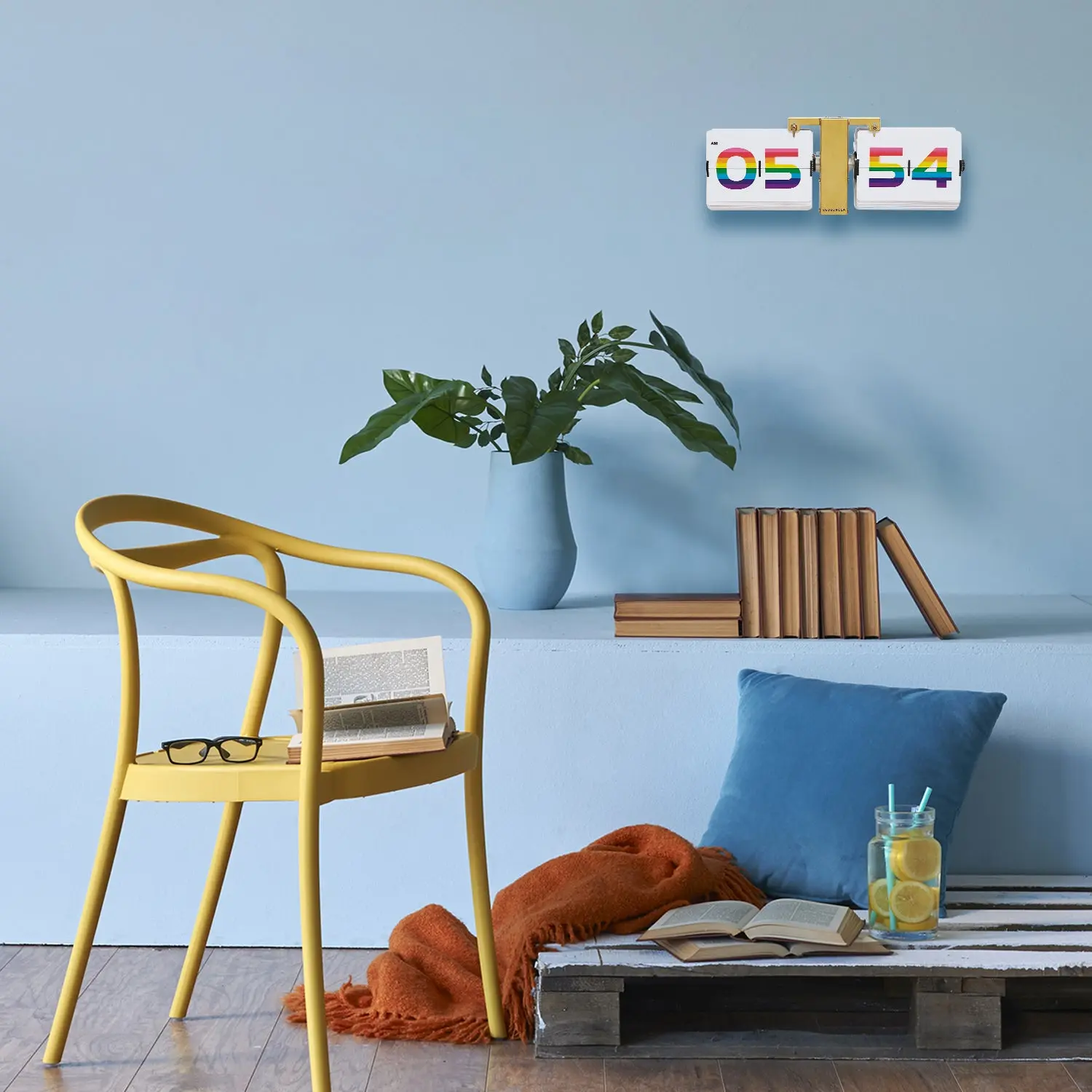 Each flip is a gentle reminder of the present moment, enveloped in a sleek metal frame with artfully crafted PVC flaps. Versatility is at its core; whether perched on a study desk, gracing a kitchen shelf, or mounted on a living room wall, the clock seamlessly fits into varied decors. Large, legible numbers ensure it's not just an art piece but a functional one.