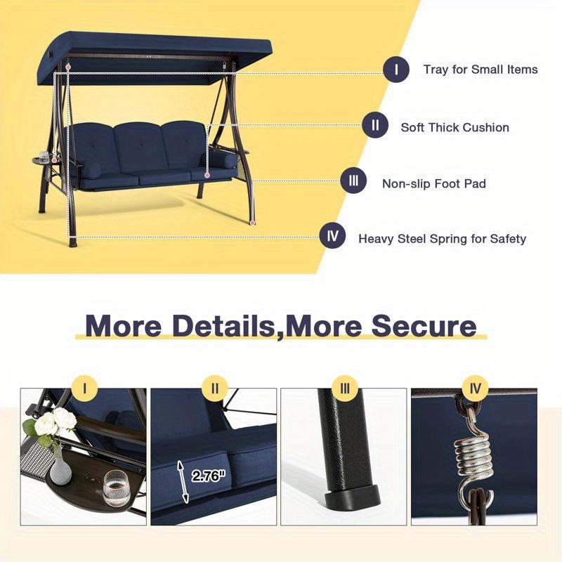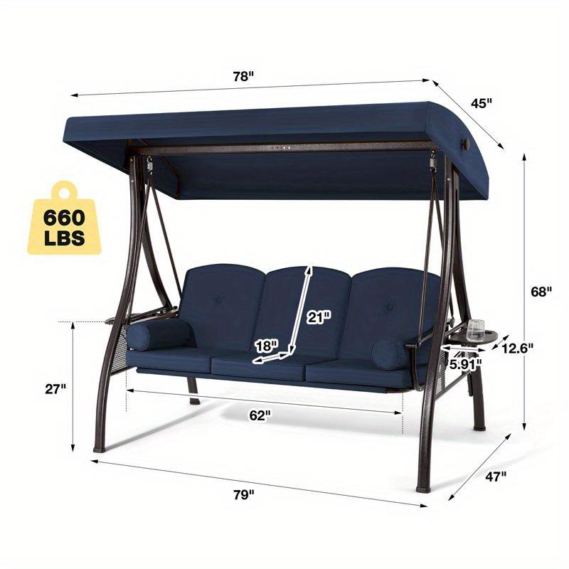 Constructed with an upgraded thickened triangular steel frame and well-designed spring hook, this 3-seat porch swing supports up to 660 lbs., ensuring long-lasting stability and years of smooth, gentle rocking for you and your family.