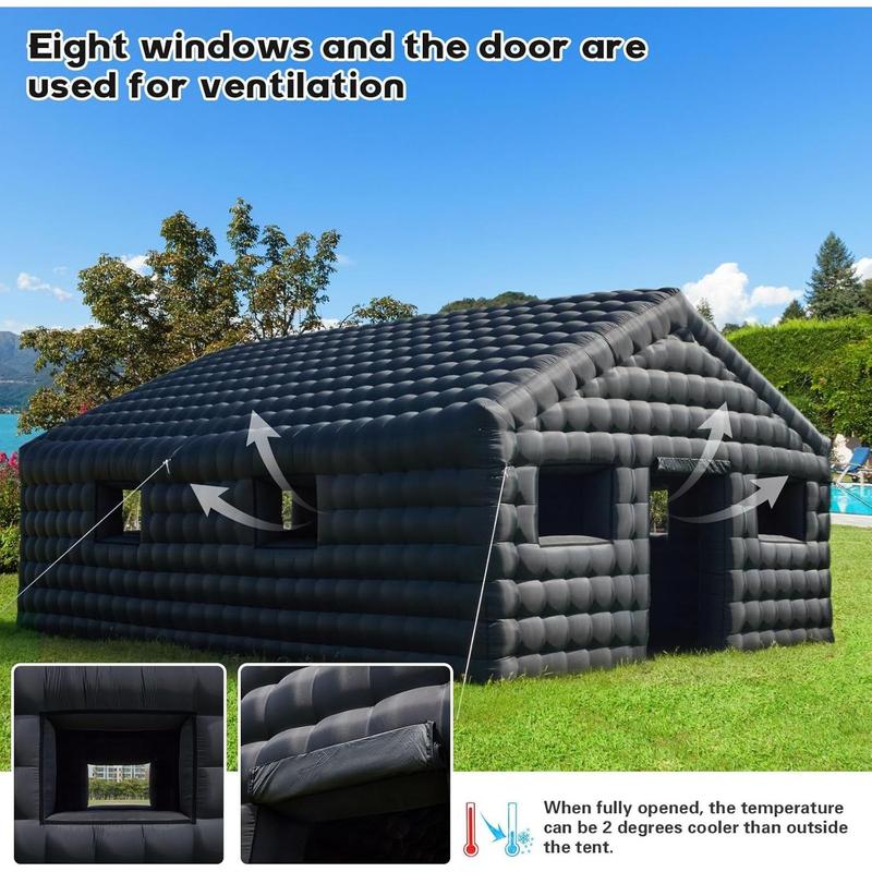 5. Inflatable Nightclub 30x20x13 Ft, Inflatable Party Tent with 1100w Blower Night Club Tent for Birthday Party Wedding Backyard Rental Business, Black/White