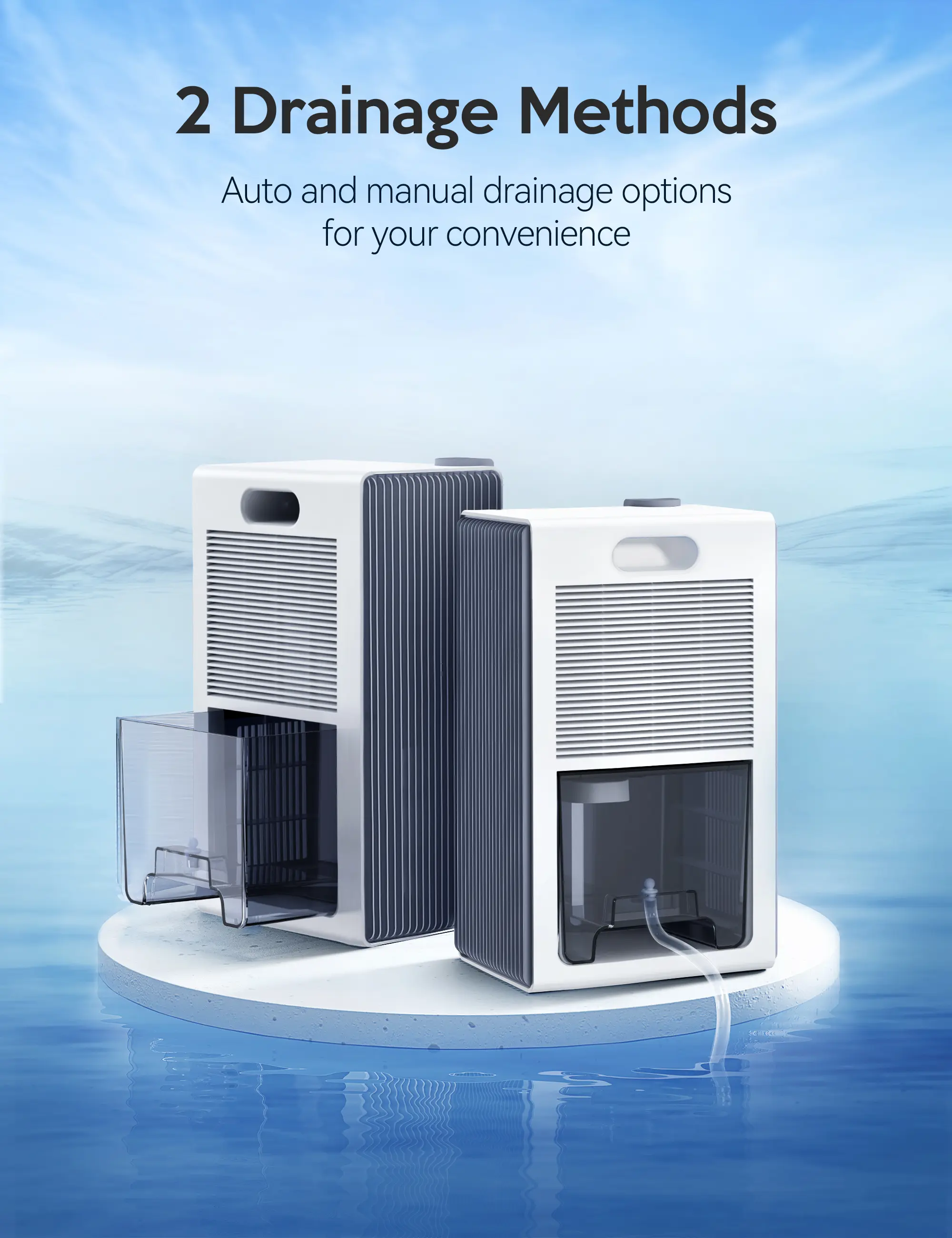 Large Room or Basement Dehumidifier, Dehumidifier with Tank, Automatic and Manual Drainage, Intelligent Humidity Control, Automatic Defrost, Dry Clothes Feature (for 4500 sq. ft.) White