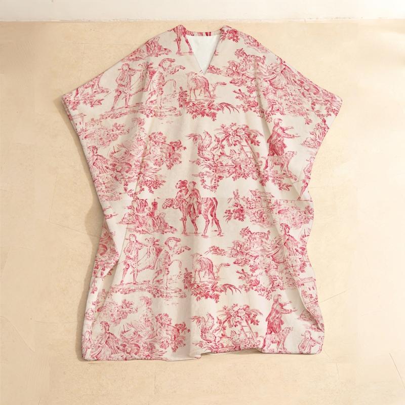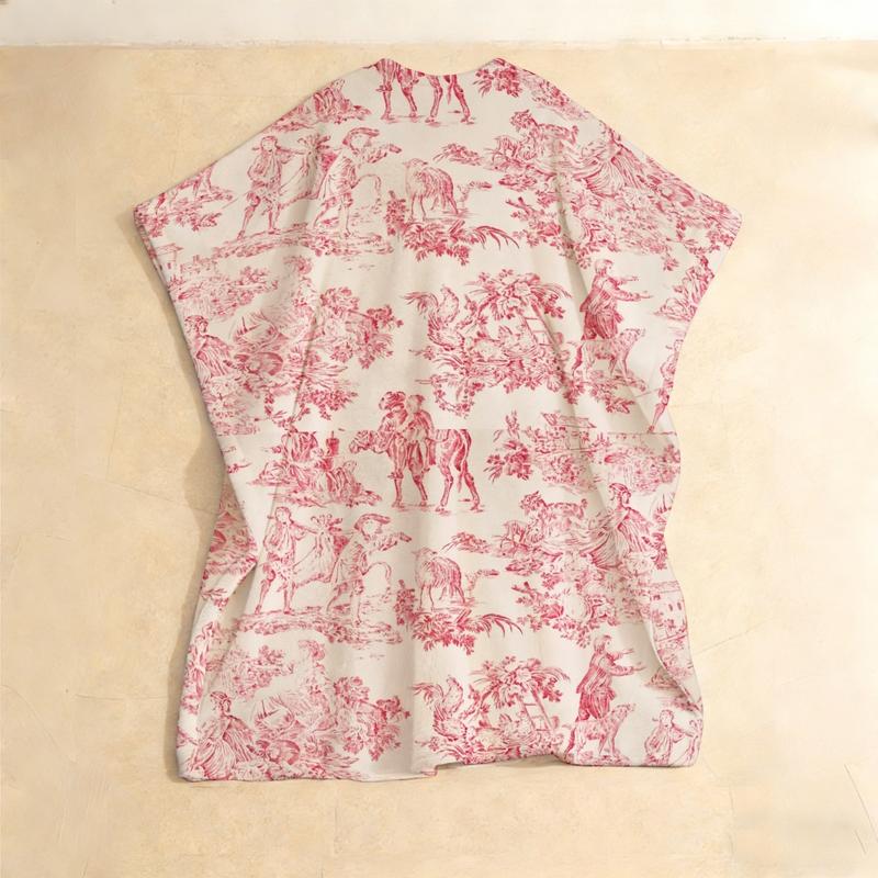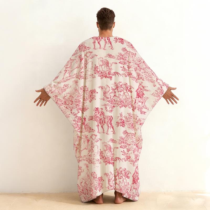Immerse yourself in European pastoral charm with this Toile de Jouy Print Plush Pullover Kaftan. This unique robe features the iconic French toile pattern—delicate monochrome scenes of countryside life, floral vignettes, or classical allegories—printed on ultra‑soft, fleece‑backed plush fabric for cozy warmth and texture. Designed with a clean V‑neck and a closed‑front pullover silhouette, it offers a relaxed yet polished fit that’s easy to layer or wear on its own. The long sleeves and loose kaftan cut ensure comfort, while the timeless narrative print adds a touch of storytelling elegance to your downtime. Perfect for leisurely mornings, creative lounging, or moments when you want to wrap yourself in art and history—a wearable piece of heritage for the modern classicist.