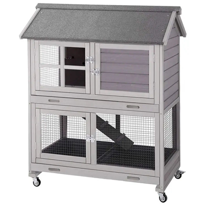 ·Rabbit hutch with TWO DEEPER pull out tray that won’t leak off and easy-to-clean. (Pls note: removable wire mesh above the bottom tray, No wire mesh above the top tray).