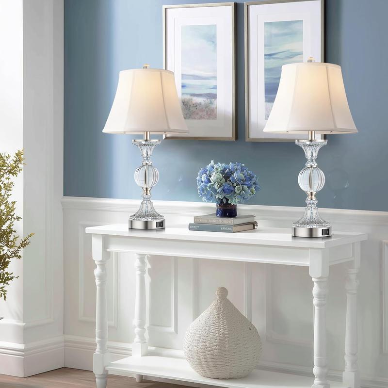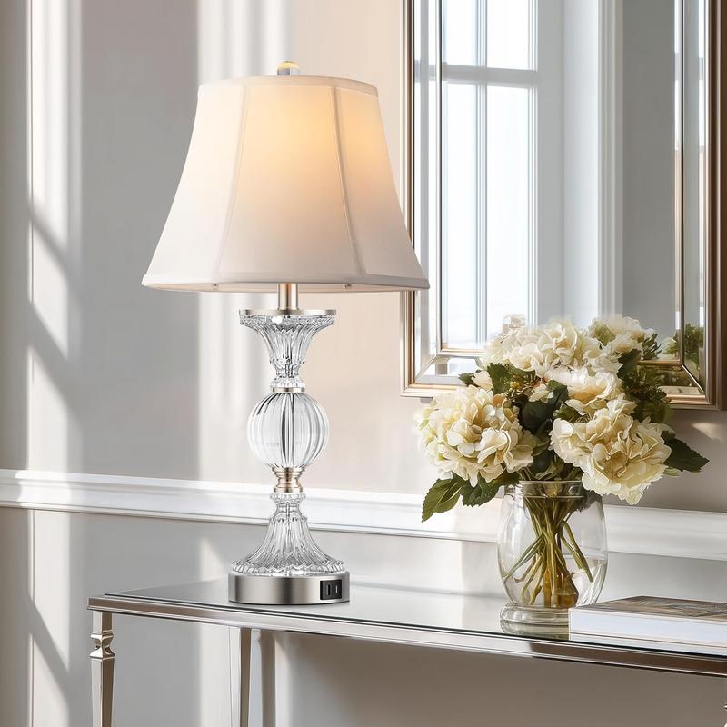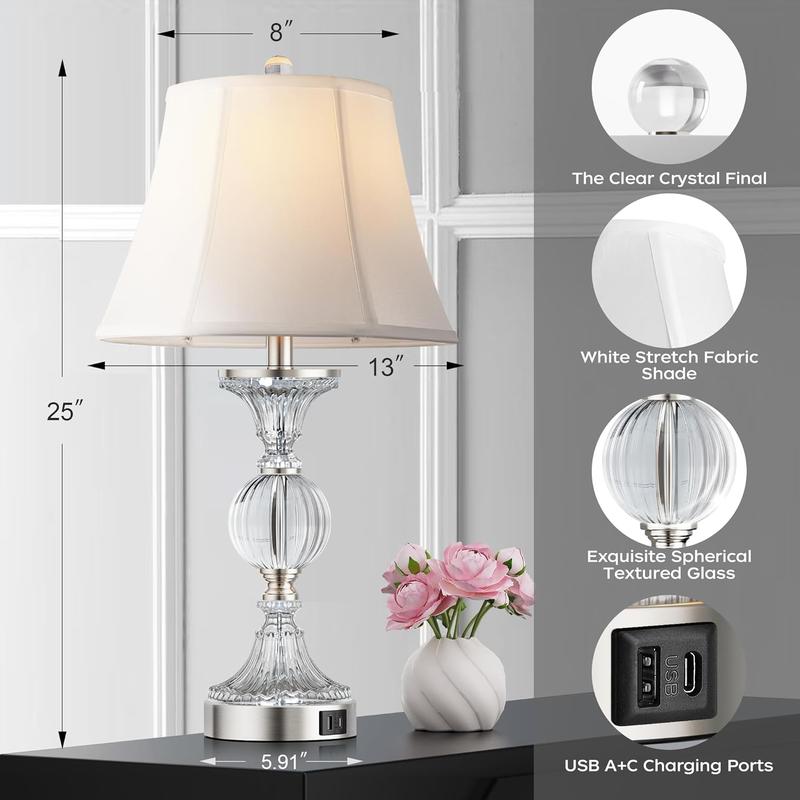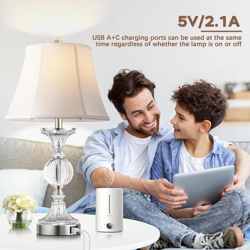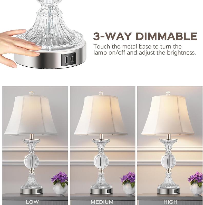 5. Glass Table Lamps for Living Room, Modern Table Lamp for Bedroom, Bedside Lamps Set of 2 with USB A+C Ports, 3-Way Dimmable Touch Lamp with Bulbs, Nightstand Lamp for Home Office Reading, Silver