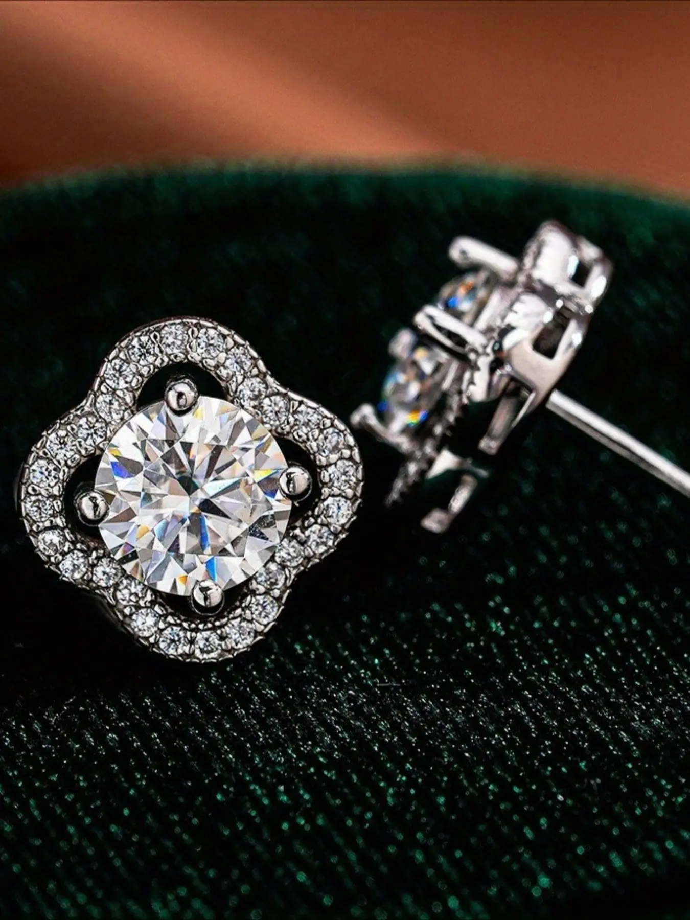 1Pair 0.5/1/2/3Carat Four-leaf Clover Stud Earrings Jewelry, Made of S925 Silver, Suitable for Wearing on Anniversaries, Birthdays or Festivals. Both Men and Women Can Wear It