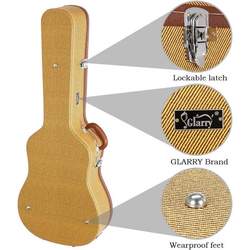 GLARRY 41" Acoustic Dreadnought Guitar Hardshell Carrying Case Microgroove Flat Guitar Case