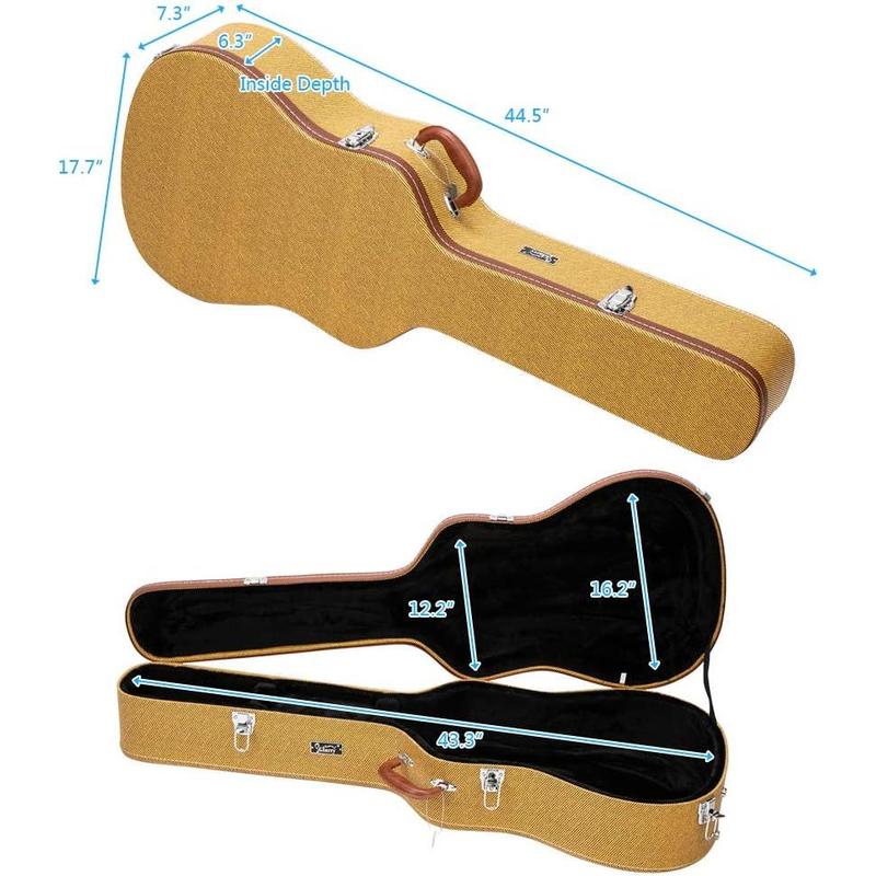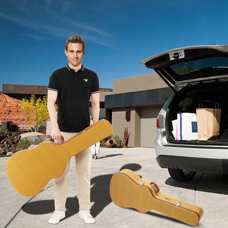 SUPERIOR MATERIAL:ourcase is made of high quality wood, leather, plush and hardware accessories material. This material not only protects your beloved guitar, but is also durable and sturdy.