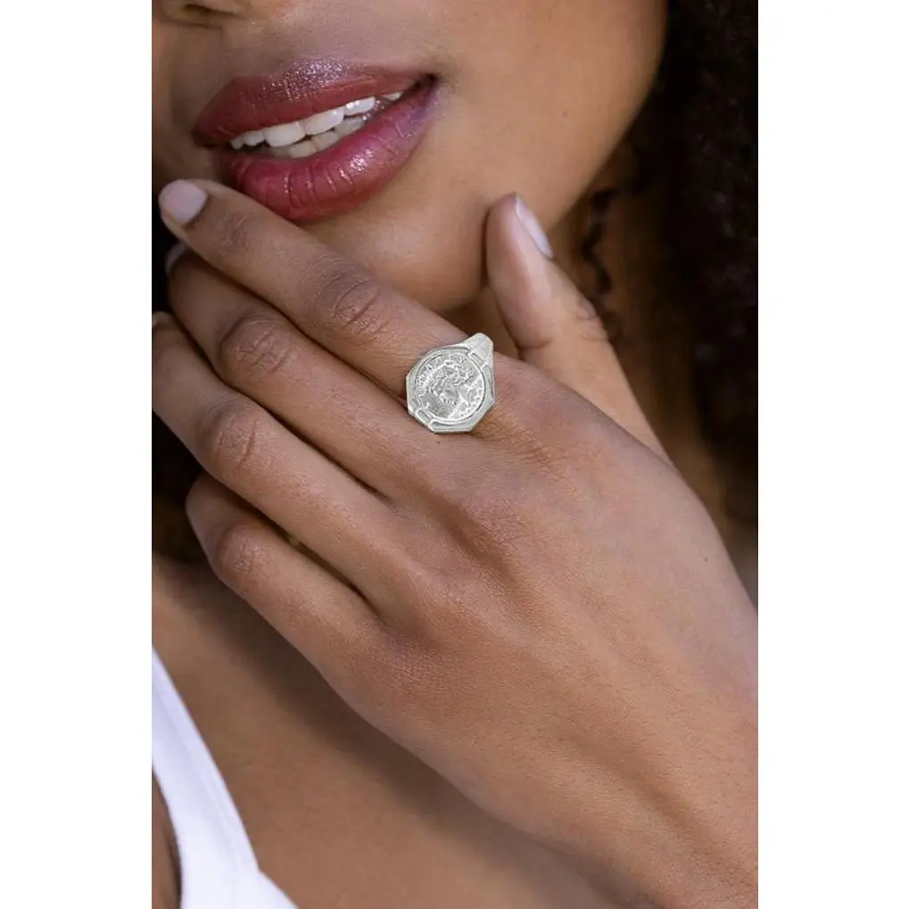 Absolutely love this coin ring in both silver and gold! The perfect statement accessory to any fit without seeming over the top - bold yet elegant. Love it!!!