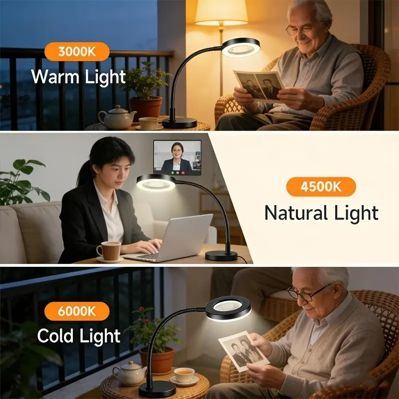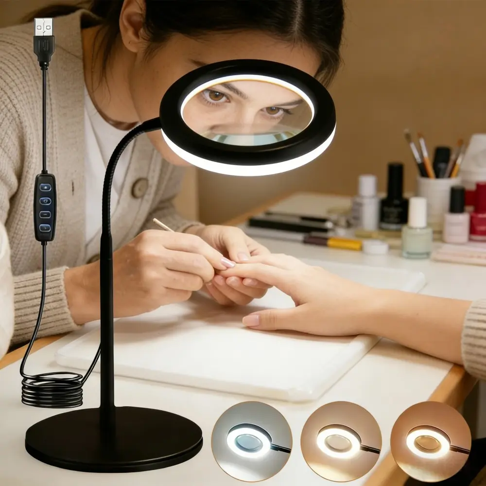 A Magnifying Glass with 5X Magnification And Light, a Desktop Magnifier with Base, 3 Adjustable Lighting Modes, And an LED Lamp Suitable for Working in Bed, Crafting, Repairs, Available in 3 Colors for The Magnifying Desk Lamp