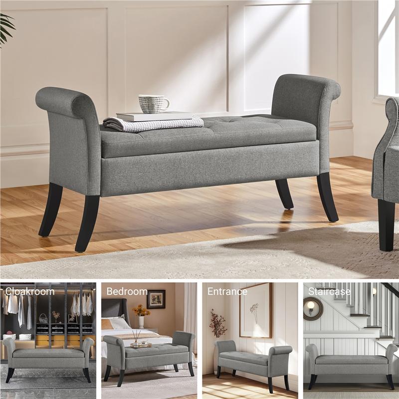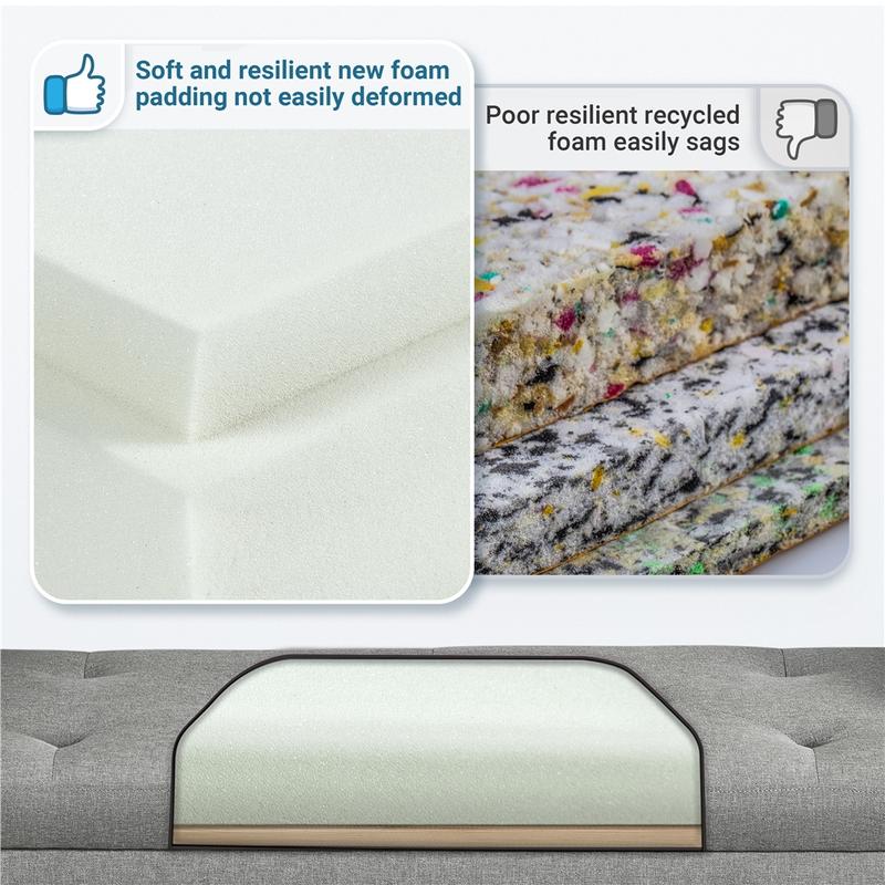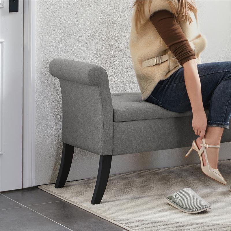 Add this versatile storage ottoman bench to your home for tidy organization of seasonal accessories, blankets, books and pillows—this functional piece elevates your everyday at-home experience. Built with sturdy MDF boards and rubber wood legs, it boasts excellent weight capacity for long-term use. Upholstered in skin-friendly, breathable and durable fabric with a soft touch, the high-density foam cushion offers a firm yet elastic seating feel. Its spacious hidden storage compartment is perfect for compact spaces, and this multi-use bench works seamlessly as a seat, extra sofa or ottoman in your entryway or living room, adapting to all your needs.