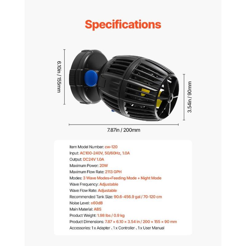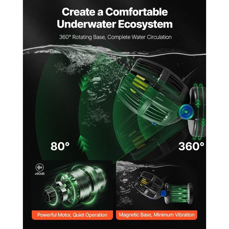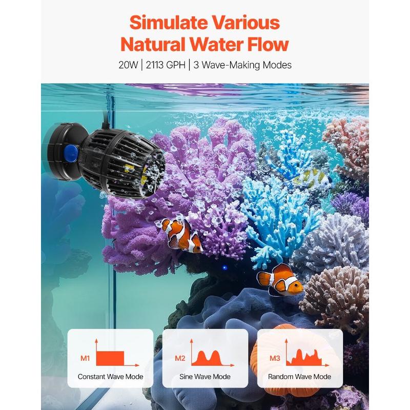 VEVOR Aquarium Wave Maker, 10W, 1057 GPH Quiet and Strong DC Powerhead, Adjustable Fish Tank Circulation Pump with Controller, Strong Magnetic Base, 360 Rotating Wavemaker, for Freshwater SaltwaterVEVOR Aquarium Wave Maker, 20W, 2113 GPH Quiet and Strong DC Powerhead, Adjustable Fish Tank Circulation Pump with Controller, Strong Magnetic Base, 360° Rotating Wavemaker, for Freshwater Saltwater Create Natural Ocean Currents Three Wave Modes Easy Control Simple