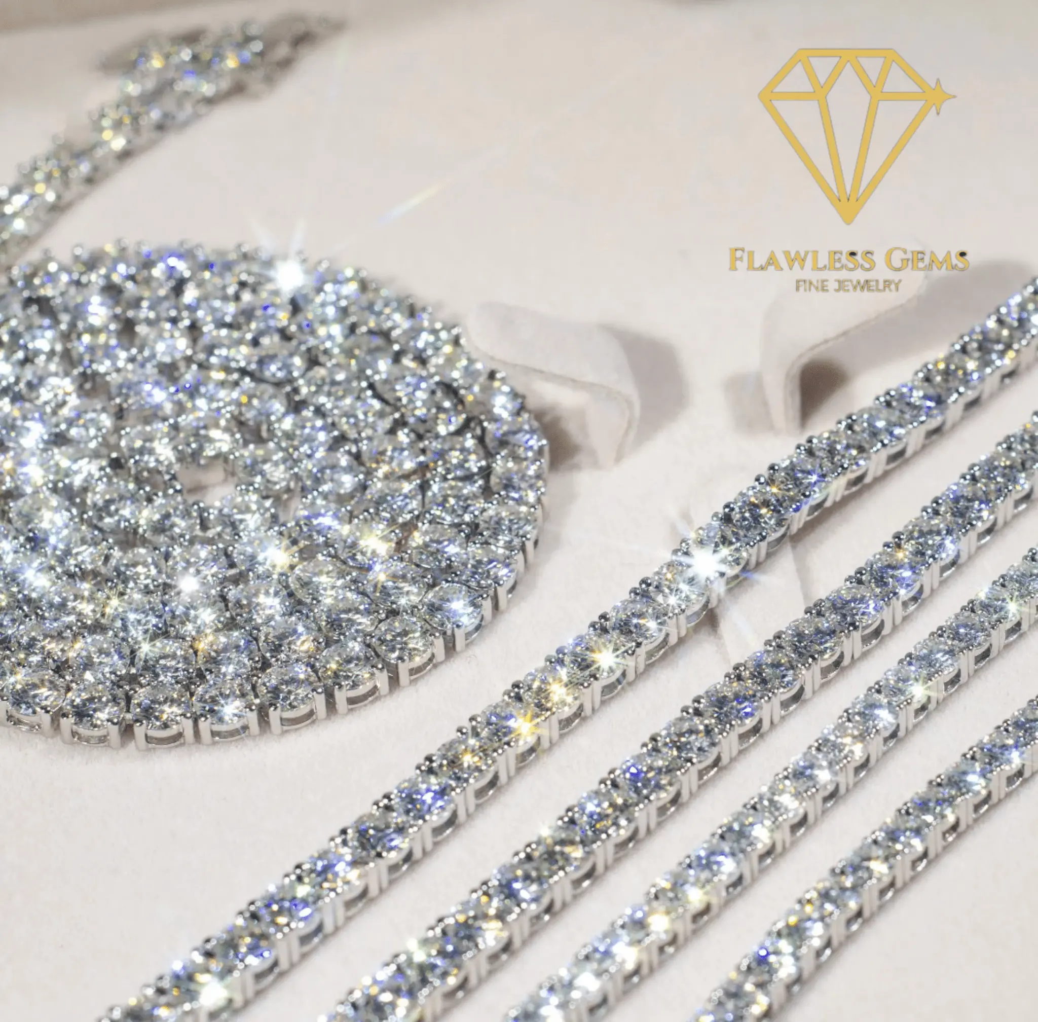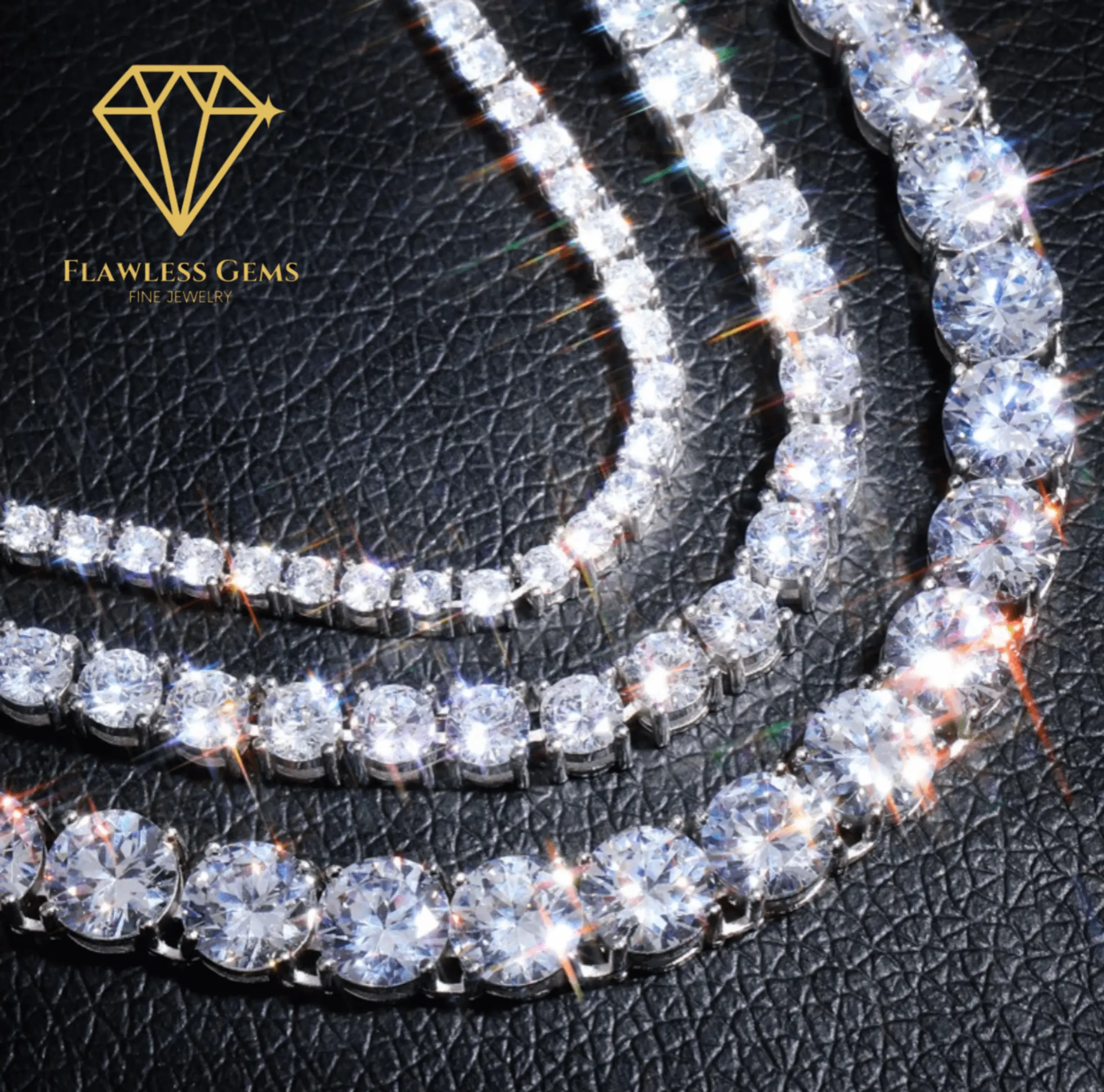 5mm 925 Sterling silver VVS tennis chain. Handcrafted GRA certified moissanite. Passes diamond tester. Lifetime warranty.