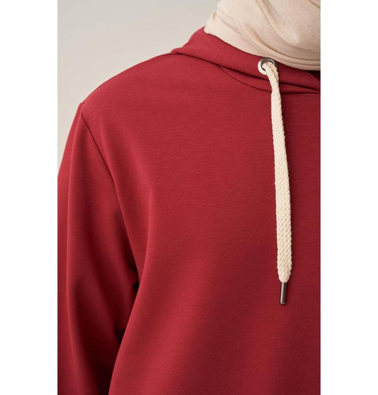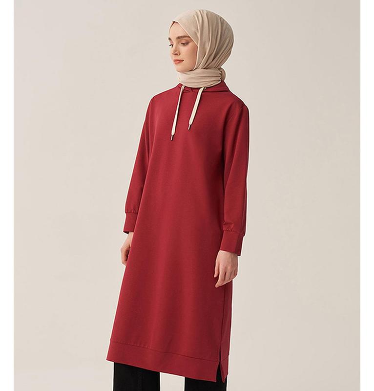 Modest Muslim Women's Hooded Comfortable Tunic - 50083 Red