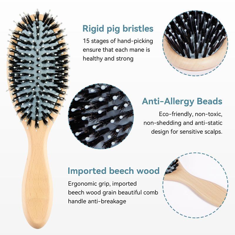 Soft Pig Bristle, Gentle Care for Scalp & Hair