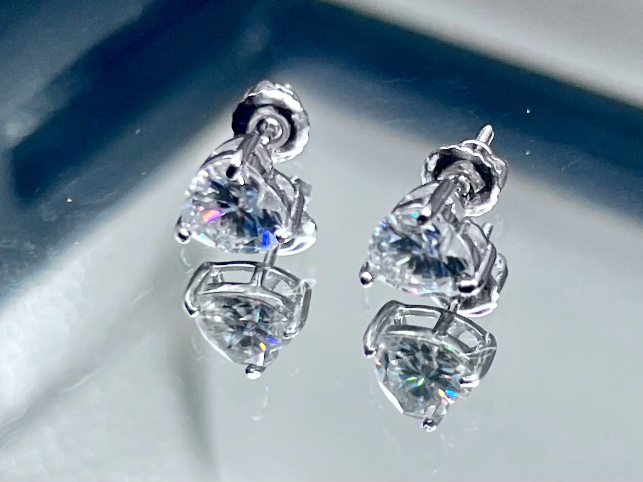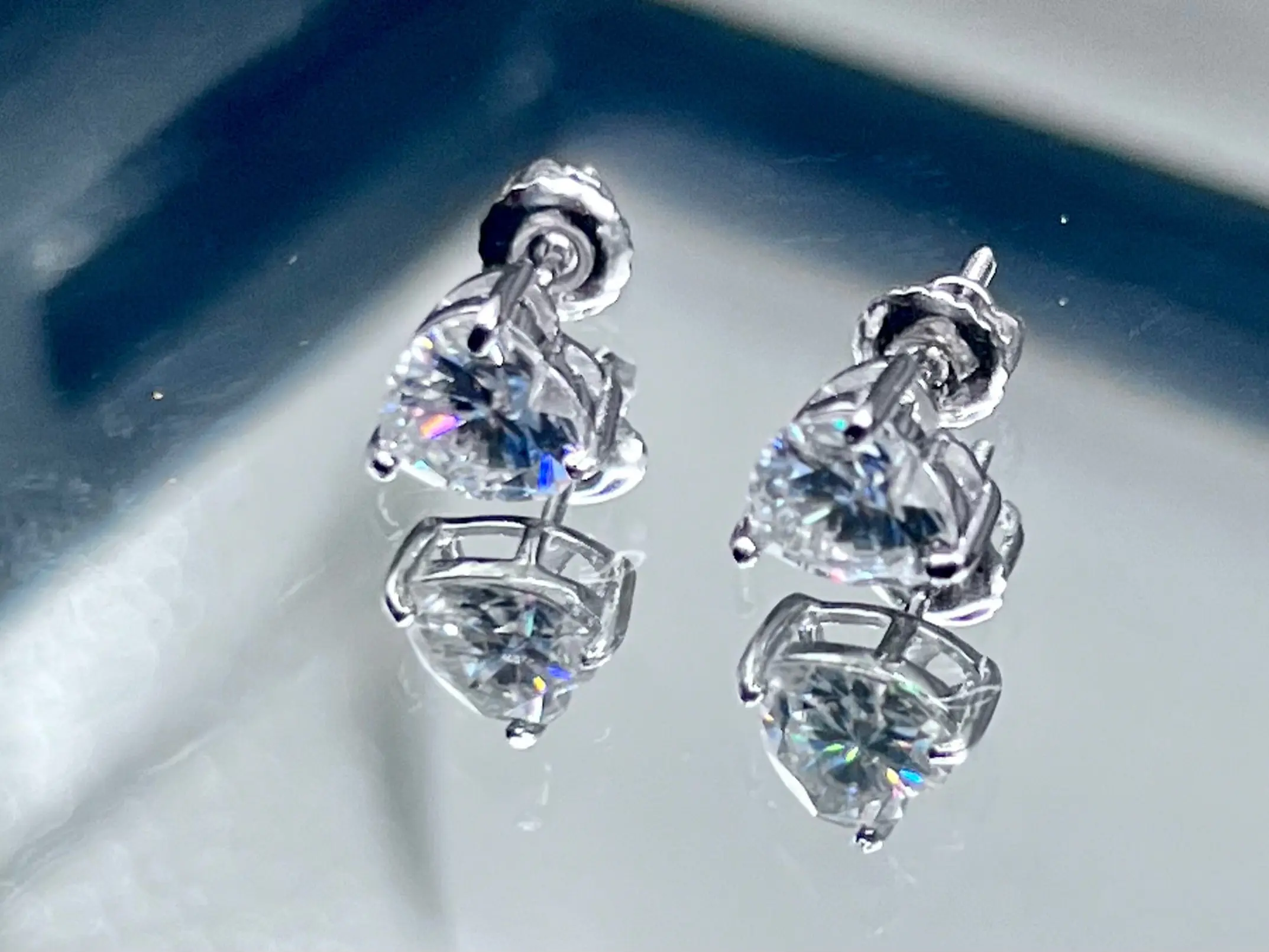 1.2 ct Solid sterling silver earrings. Handcrafted GRA certified VVS moissanite. Screw on backs, passes diamond tester. Lifetime warranty