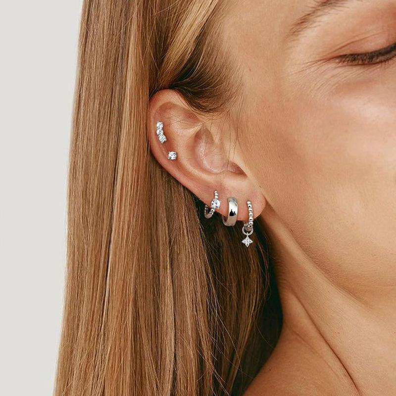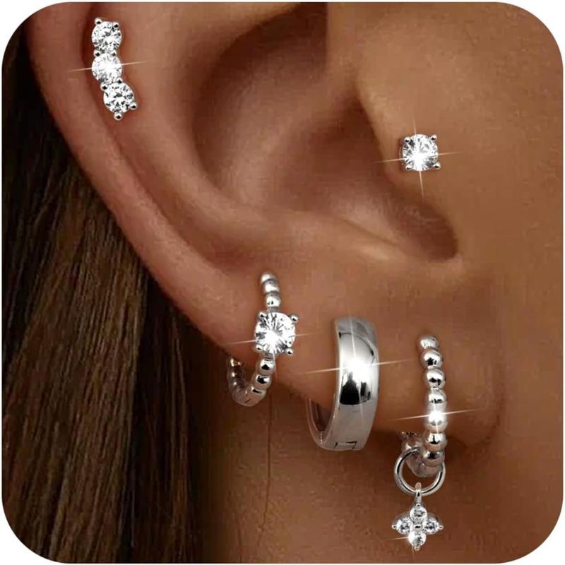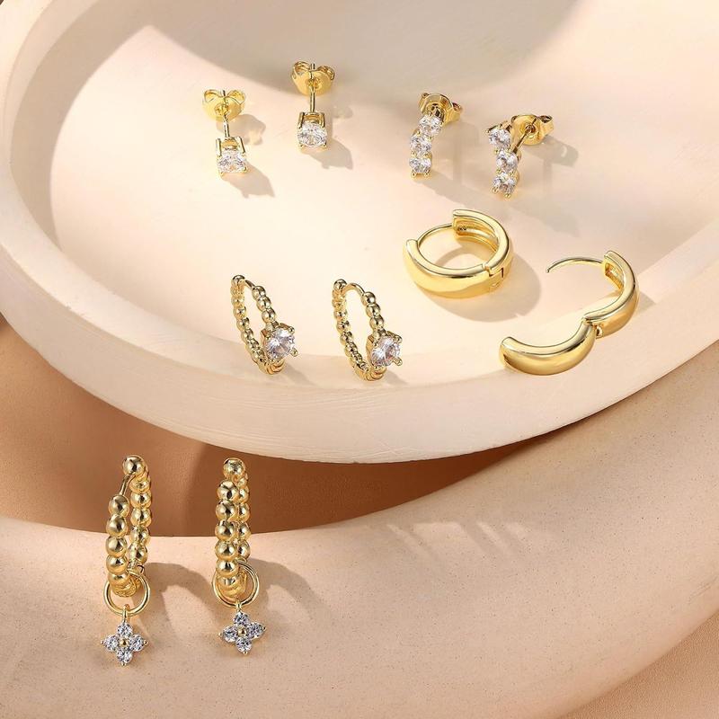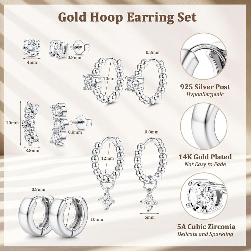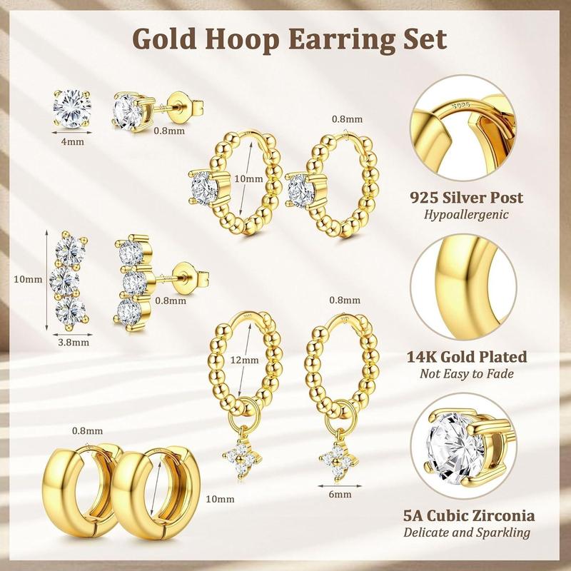 ·MULTIPLE STYLES: Our gold earring set includes cubic zirconia stud earrings, small hoop earrings, and chunky huggie earrings. You can wear them stacked or individually to match your different dressing needs, especially suitable for multiple piercings