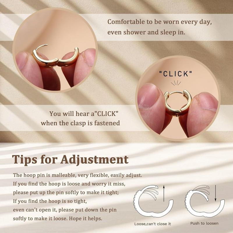 ·HYPOALLERGENICITY: These small gold huggie hoop earrings are made of high-quality brass and paired with 925 sterling silver earring posts, which will not turn green or irritate the skin, making them friendly to people with sensitive ears.