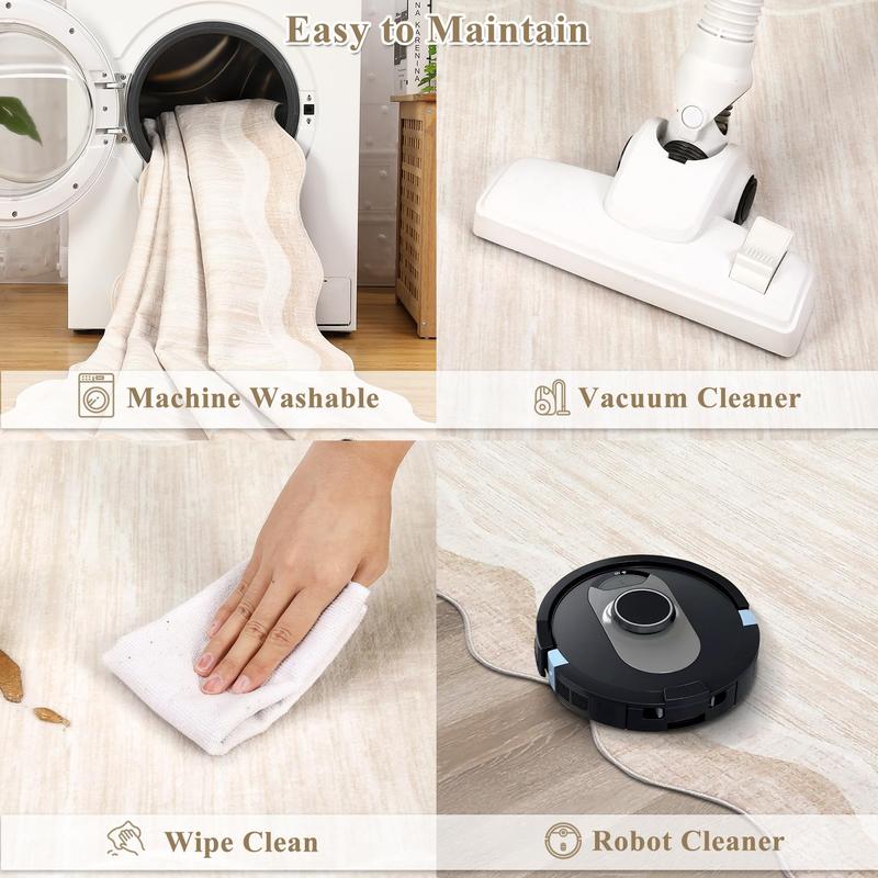· 【Convenient Washing, Easy Maintenance】: The washable rug is very easy to clean, even stubborn stains can be easily removed. During daily maintenance, simply vacuum to remove dust, dirt, and pet hair, keeping the carpet clean. When deep cleaning is required, follow the care instructions to put it in the washing machine. No need to spend expensive professional cleaning service fees.